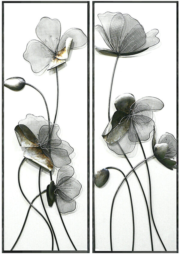 Komplett handgefertigte, sehr große 2-teilige Wanddekoration aus Metall, mit Rahmen, mit Blumen. Eine wunderbare Ergänzung für Ihr Zuhause oder draußen unter einer Veranda. Da es von Hand bemalt wird, ist jedes Stück ein Unikat und die Form oder Farbe kann leicht vom Foto abweichen.