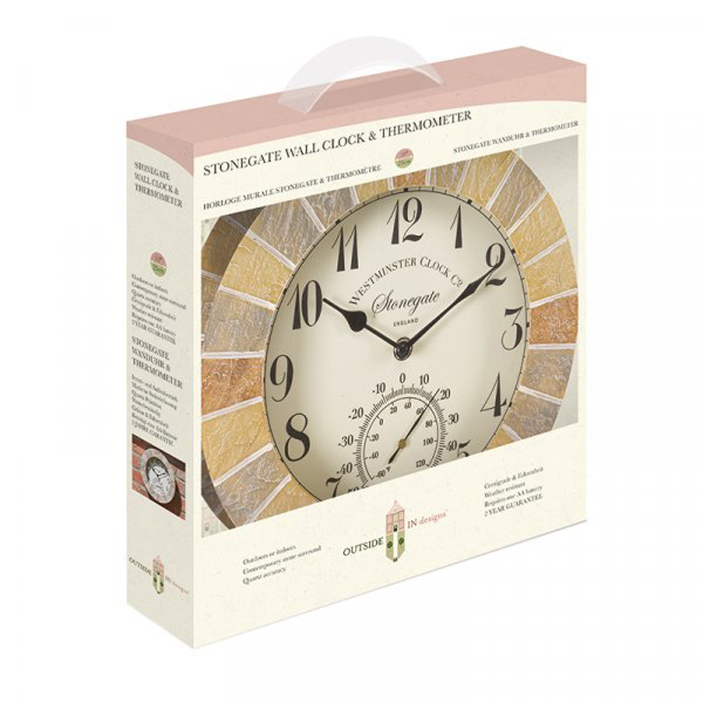 Outdoor-Uhr in Steinoptik mit Uhrwerk und Thermometer