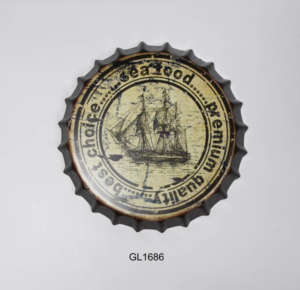 Diese eiserne Wanddekoration in Form eines Bierdeckels ist eine schöne Dekoration für Ihr Zuhause, drinnen oder draußen.