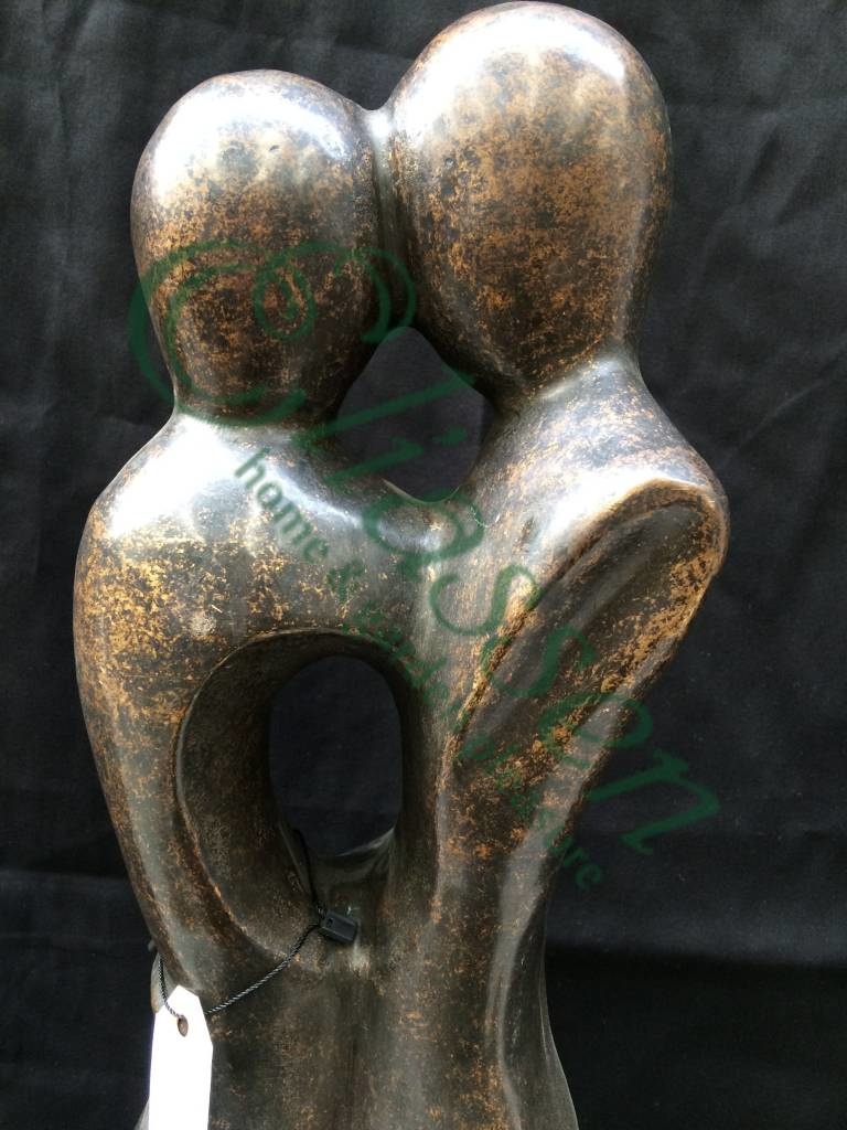 Wunderschöne Skulptur eines großen abstrakten Liebespaares aus hochwertiger Bronze mit einem Mindestkupfergehalt von 75%, was eine sehr lange Lebensdauer garantiert.