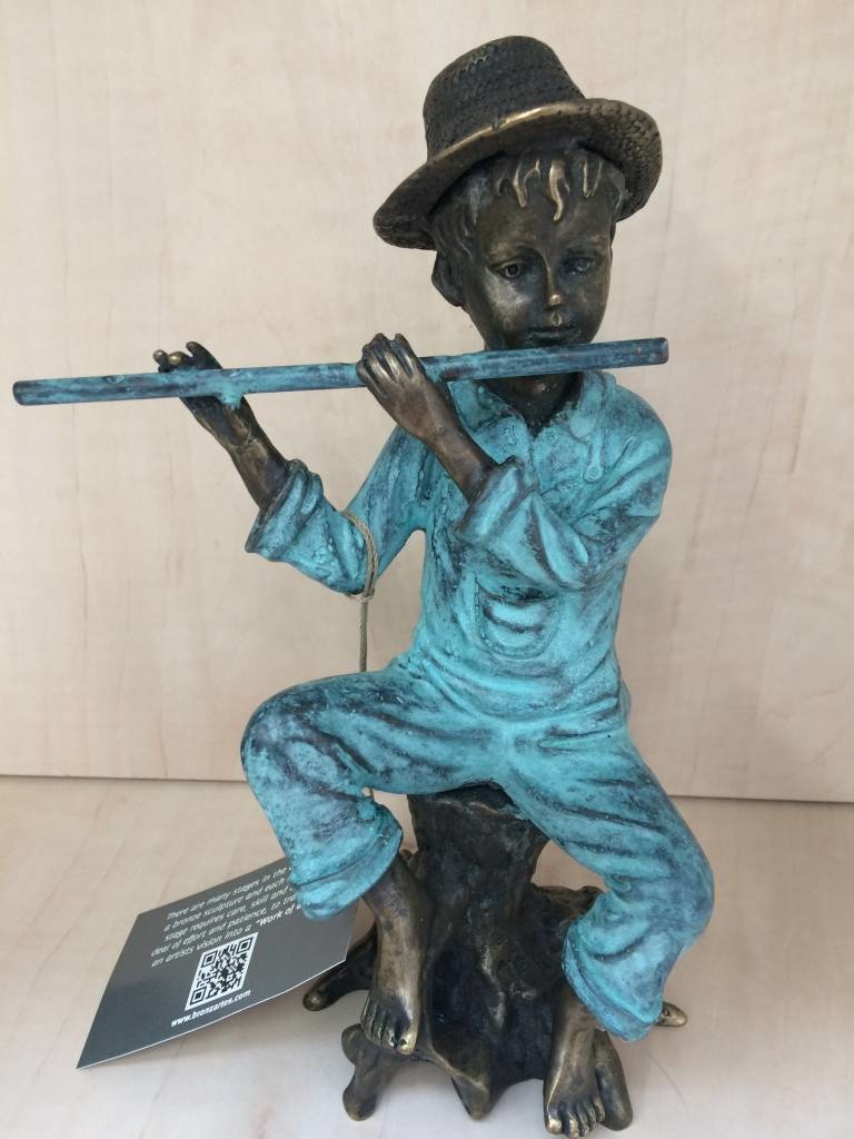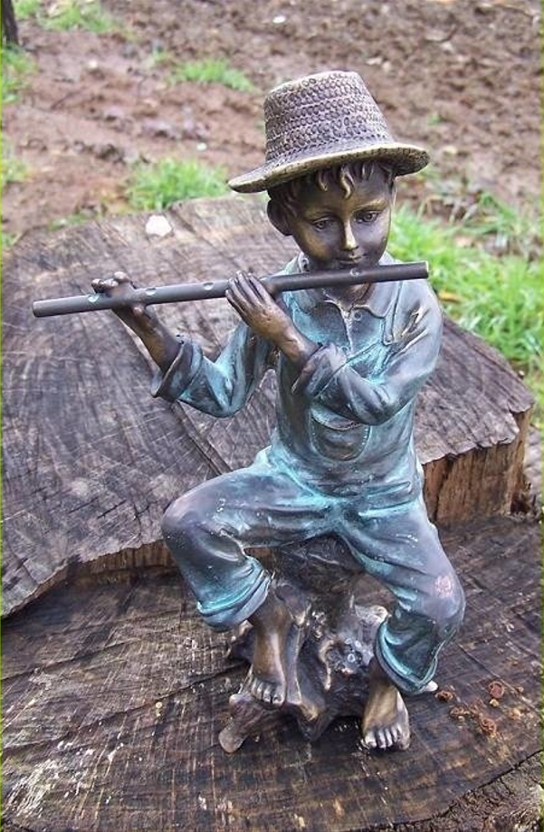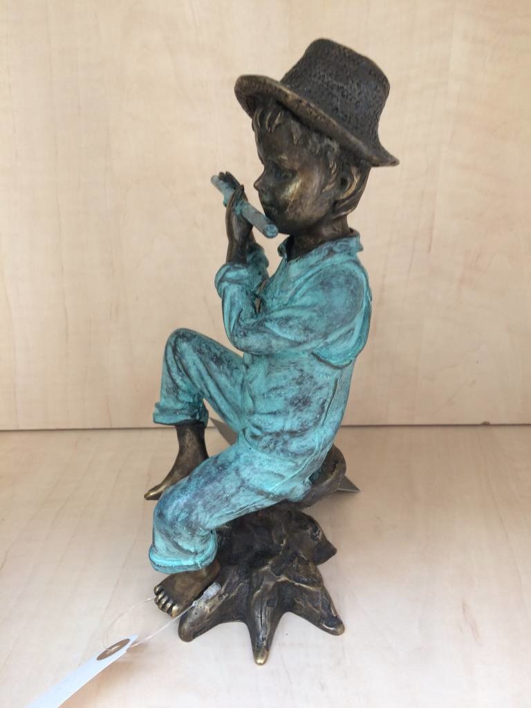 Schönes Bild eines Jungen mit einer Flöte von hoher Qualität Bronze mit einem minimalen Kupfergehalt von 75%, die ein sehr langes Leben garantiert.