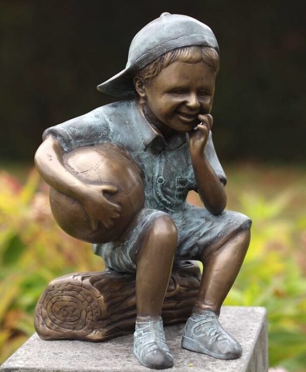 Junge mit Fußball aus Bronze