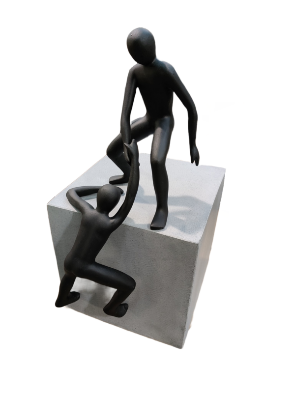 Ein schönes Dekorationsstück für Haus und Garten ist diese Statue in Kombination mit einem Würfel aus Polystone. Perfekt verarbeitet ohne Nähte. Die Figuren bestehen aus dem sehr starken Fiberstone, der sehr stark ist. Fiberstone besteht aus zerkleinertem Marmor, gemischt mit Polyester-Epoxidharz. Dieses Modell ist ein super schönes und exklusives Dekorationsstück in jedem Garten, Haus oder Arbeitsplatz. Dieser Artikel, der 2 Menschen darstellt, die sich gegenseitig helfen und die Hände ausstrecken, wird für viele Menschen ein wertvolles Geschenk sein.