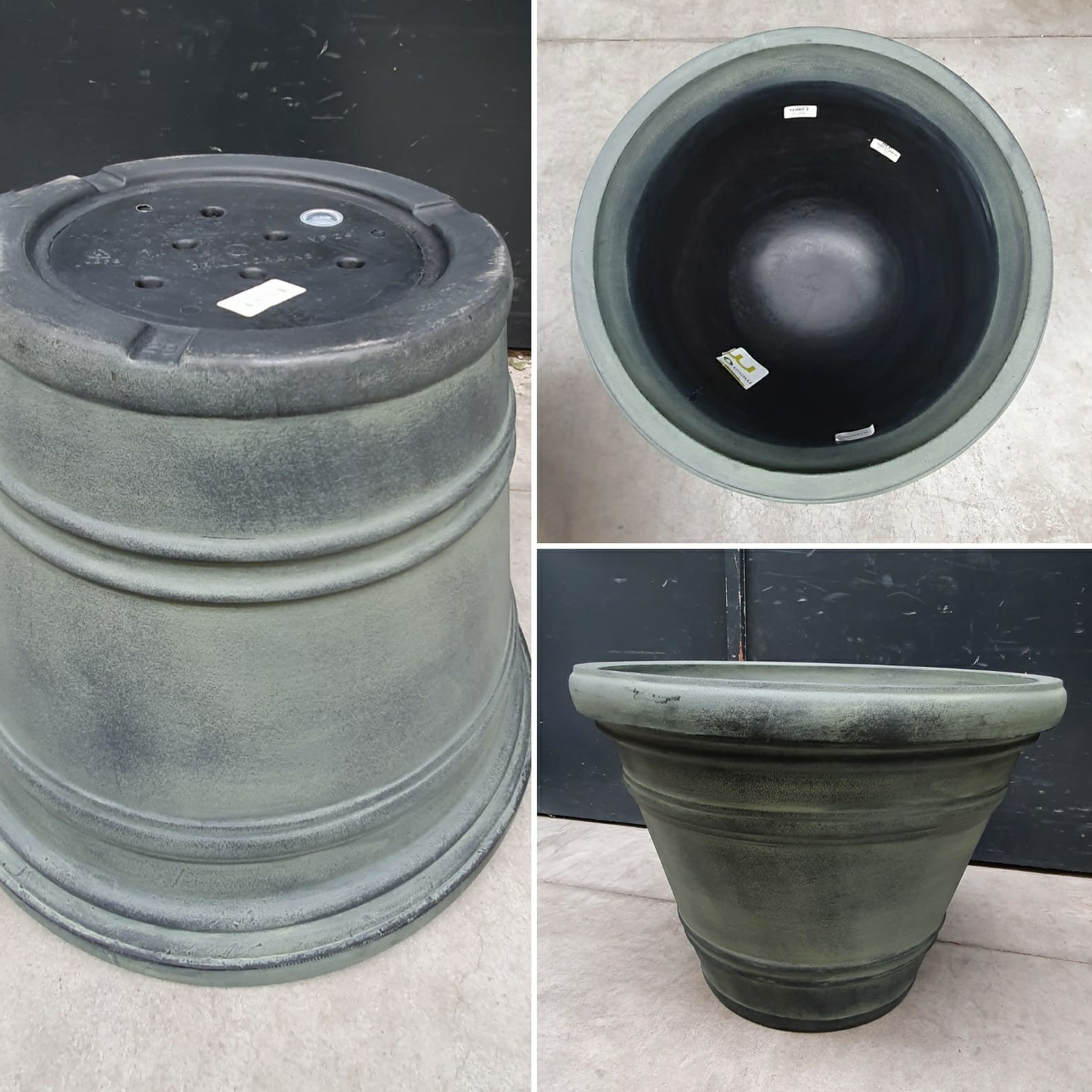 Wenn Sie einen großen kupferfarbenen runden Blumentopf wünschen, der für Palmen, Olivenbäume oder andere mediterrane Pflanzen geeignet ist, der sehr robust, farbecht und leicht ist, dann ist die Wahl für diesen dunkelgrauen Blumentopf schnell getroffen. Sie können diesen grauen Blumentopf nicht vom Original unterscheiden, die Farbe und das Aussehen sind genau die gleichen wie bei einem toskanischen Keramiktopf.