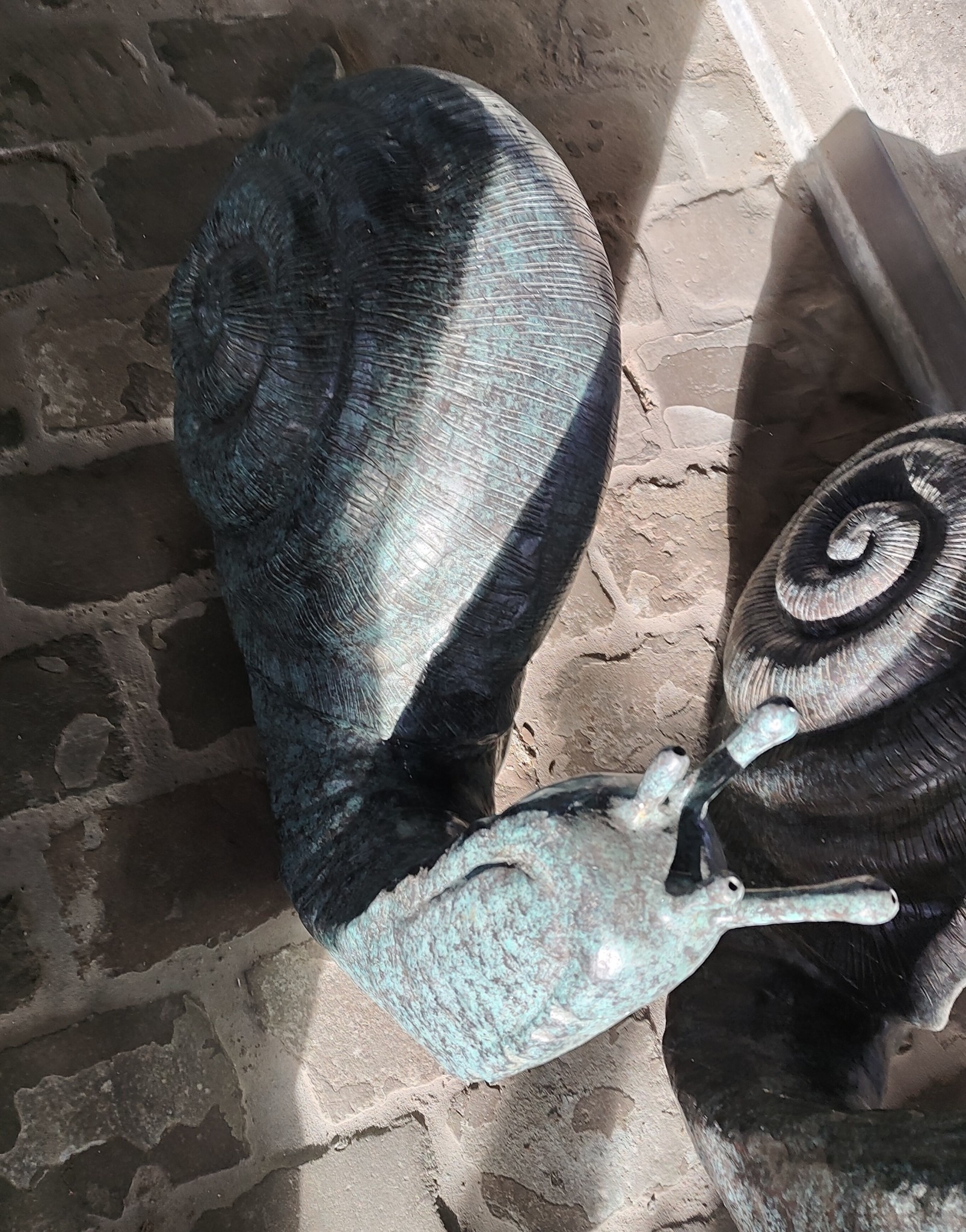 Wunderschöne Statue einer extra großen Schnecke aus echter Bronze. Die Bronze dieser Statue hat einen garantierten Kupfergehalt von 75 %, was der Lebensdauer und dem Aussehen sehr zugute kommt.