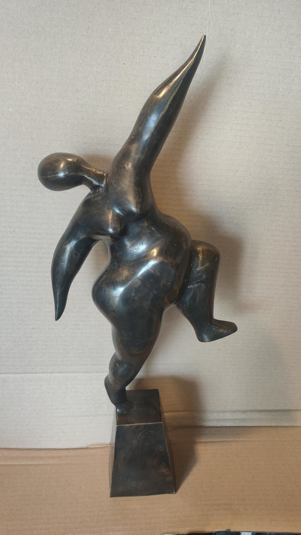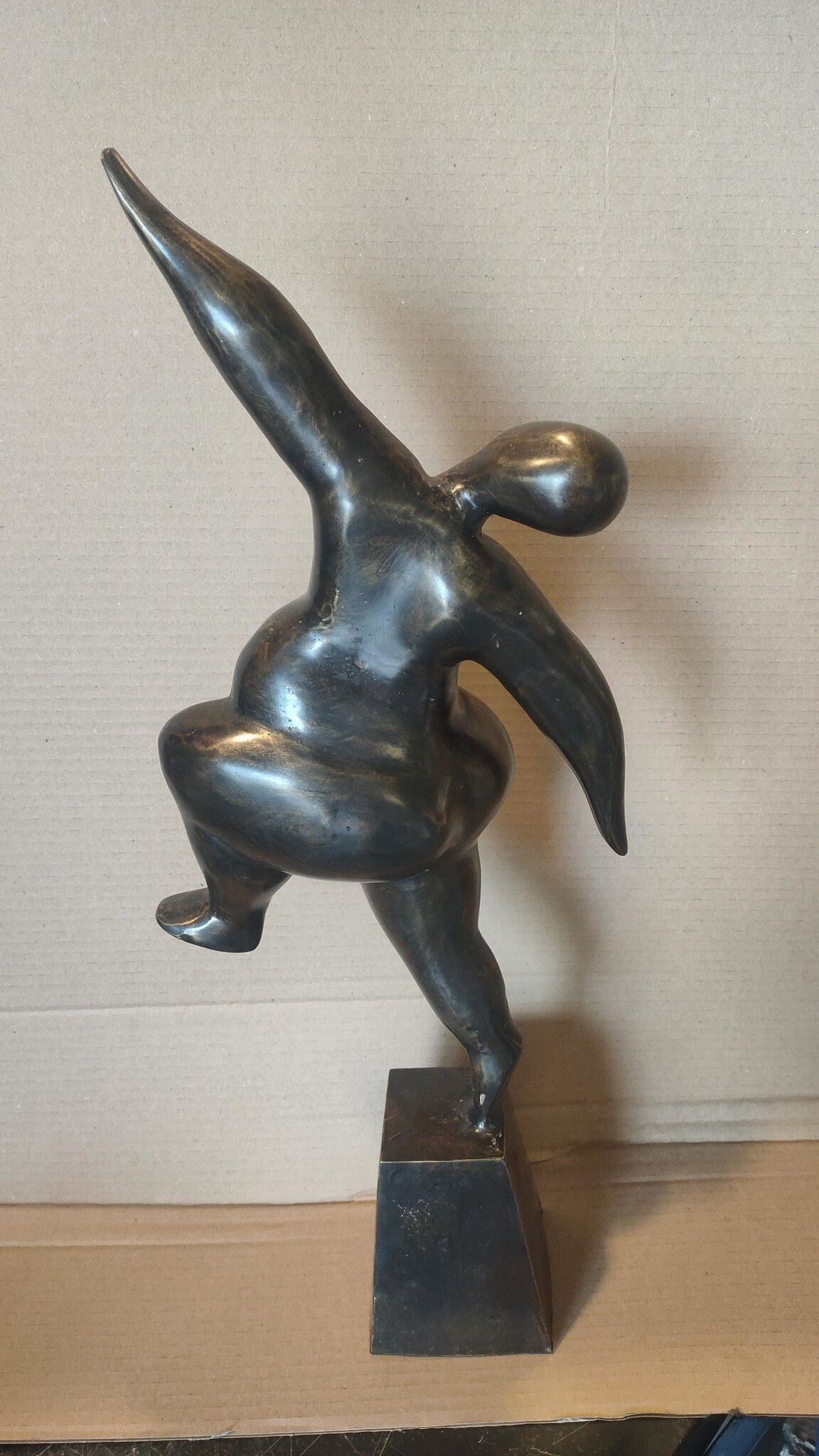 Wunderschön gestaltete Bronzestatue mit einer dicken Dame auf kleinem Fuß, aus Bronze mit einem Mindestkupfergehalt von 75%.
