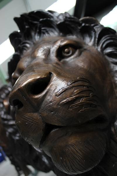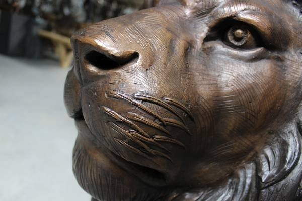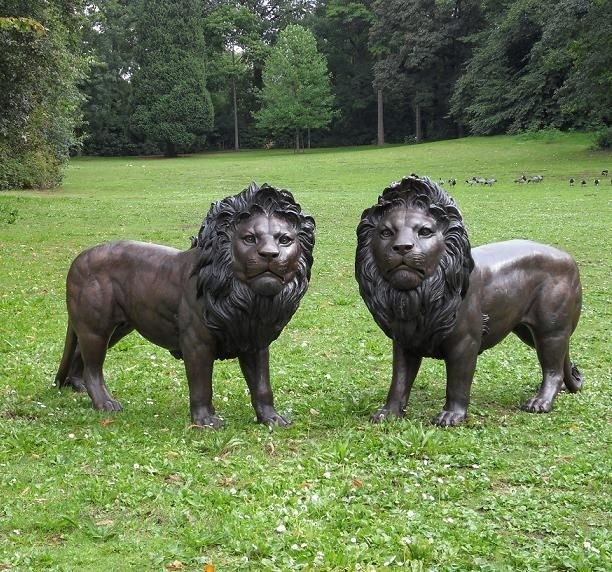 Schönes Löwenpaar aus hochwertiger Bronze mit einem Kupfergehalt von mindestens 75% garantiert eine sehr lange Lebensdauer.