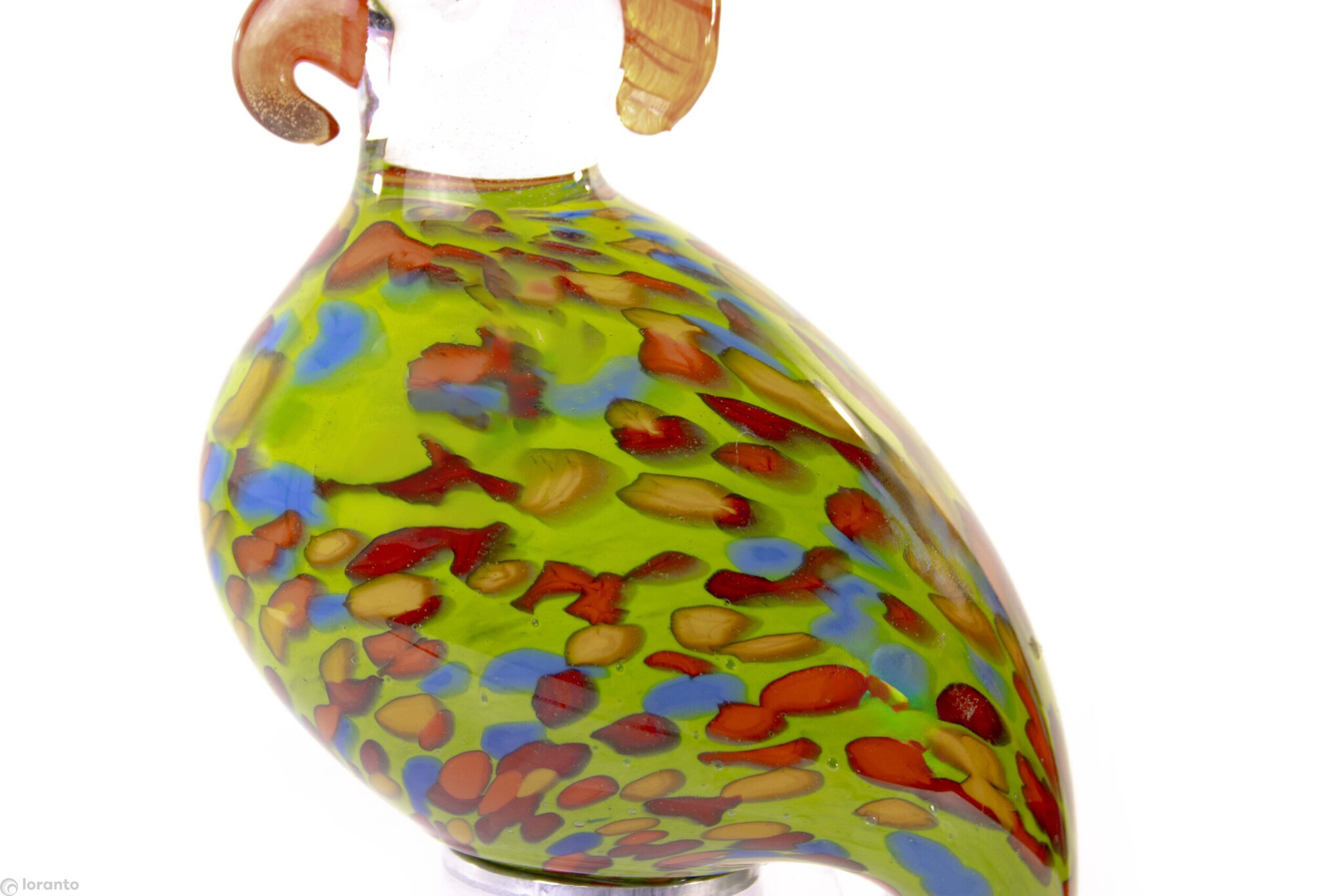 Gartenspieß aus Glas, Papagei, Orange und Grün, 27 cm.