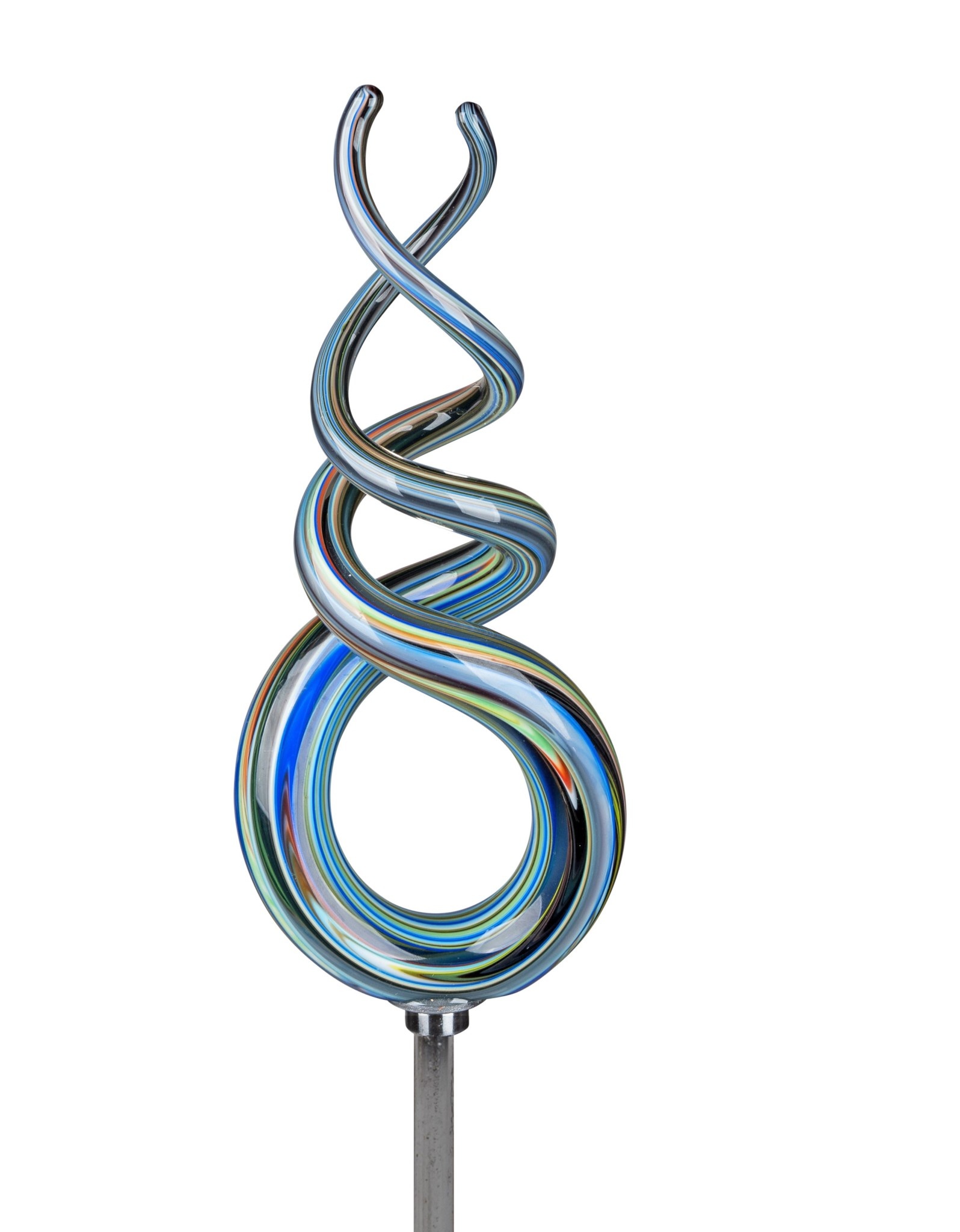 Dieser mehrfarbige Gartenspieß aus Glas findet in jedem Garten einen schönen Platz.