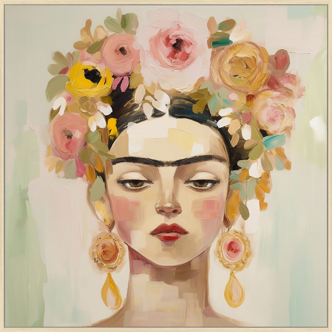 Gemälde Frida Kahlo Leinwand Blumenkopf 70x70cm