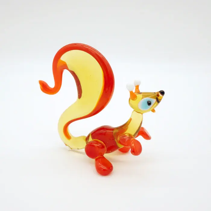 Bekijk een goed hoe verfijnd onze glaskunstenaar te werk is gegaan, hoe klein de details zijn van deze glasminiatuur van een eekhoorn zijn.