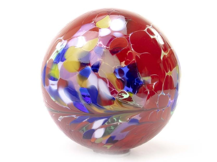 Einzigartiges Glasobjekt einer Glaskugel auf einem Stift mit einer Höhe von 90 cm.