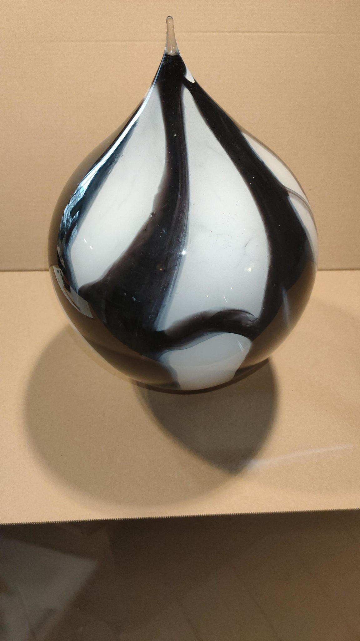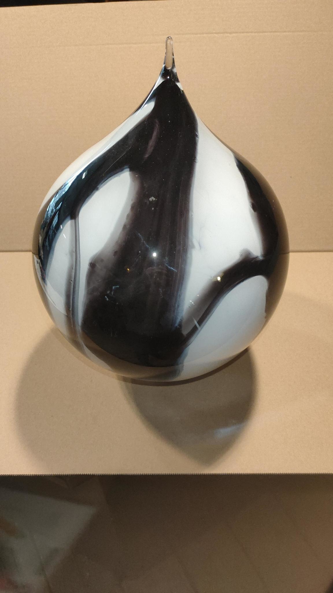Diese Zwiebellampe aus dickem Glas wird eine Bereicherung für Ihr Zuhause oder Geschäft sein. Es ist ein einzigartiges Glasgeschirr, da dieses Modell mundgeblasen ist und daher jedes Stück farblich einzigartig ist. schwarze Farben mit dem weißen Glas erzeugen einen tollen Lichteffekt. Diese Glaslampe ruht auf einem Buchenholzplateau von 15 cm und ist mit einer E14-Fassung mit 1,2 m Kabel mit Schalter ausgestattet. Sie können das Glas auf das Plateau stellen. In diese Lampen dürfen nur LED-Lampen eingebaut werden, da LED-Lampen kaum Wärme erzeugen.