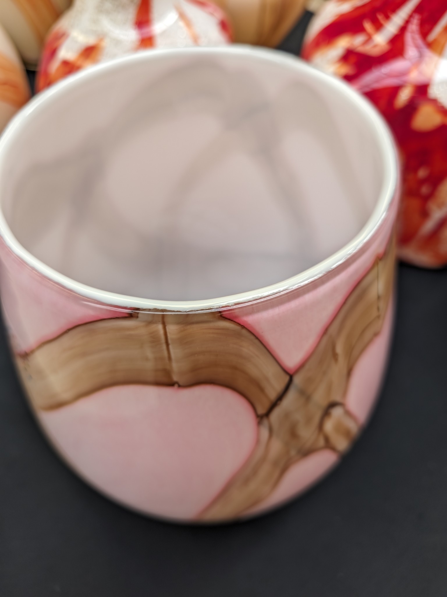 - Farbe: Rosa und braune Farben.