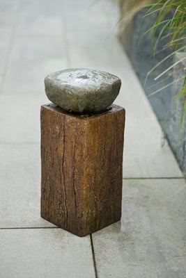 Dieser Terrassenbrunnen mit schönem Holzmaserungs-/Steindesign ist modern und rustikal zugleich. Komplett aus starkem Polyresin in wunderschönen Naturtönen gefertigt.