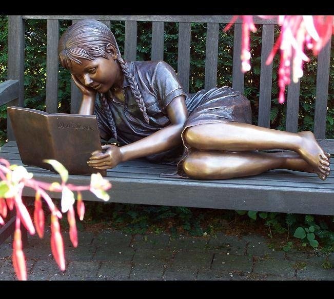 Liegendes Mädchen, das Bronze liest