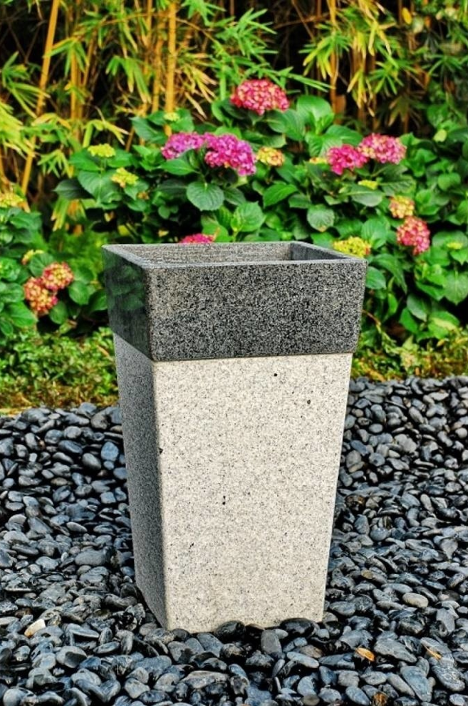Vase Modell Topf grau meliert poliertem Granit, mit dunkleren Rand. Sublime fertigen 40x40x65cm