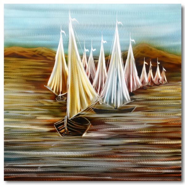 Segeln ist die Technik, bei der sich ein Segelschiff mit Windkraft anstelle eines Motorantriebs über das Wasser bewegt. Stärke und Richtung des Windes sorgen dafür, dass sich das Schiff bewegen kann. Es ist ein komplizierter und prestigeträchtiger Sport, bei dem man wissen muss, wie der Wind ist und wie viel Windstärke an diesem Tag erwartet wird. Segeln ist eine wahre Kunst, ebenso wie unser handgefertigter Aluminium-Gemälde-Segelwettbewerb.