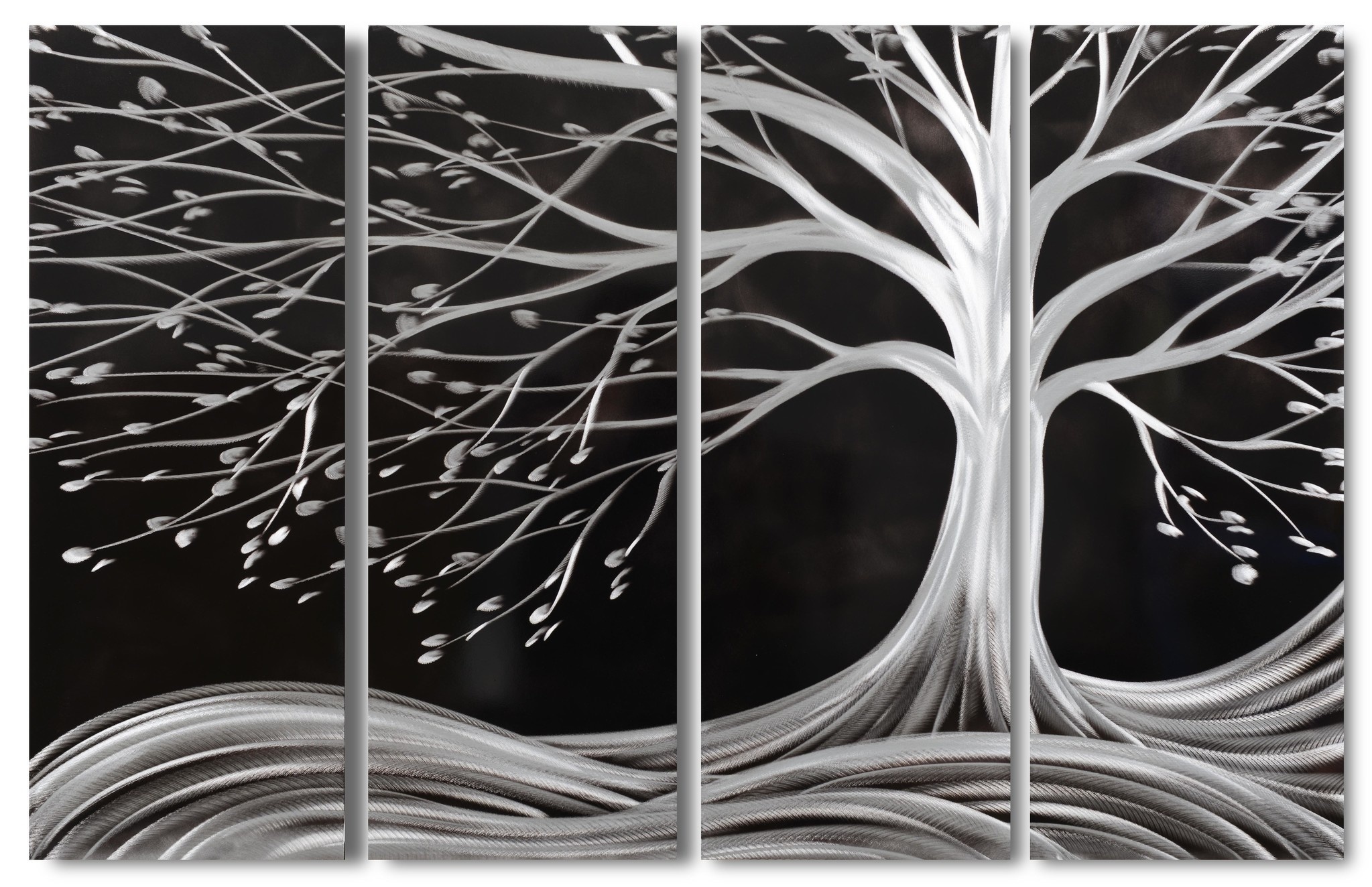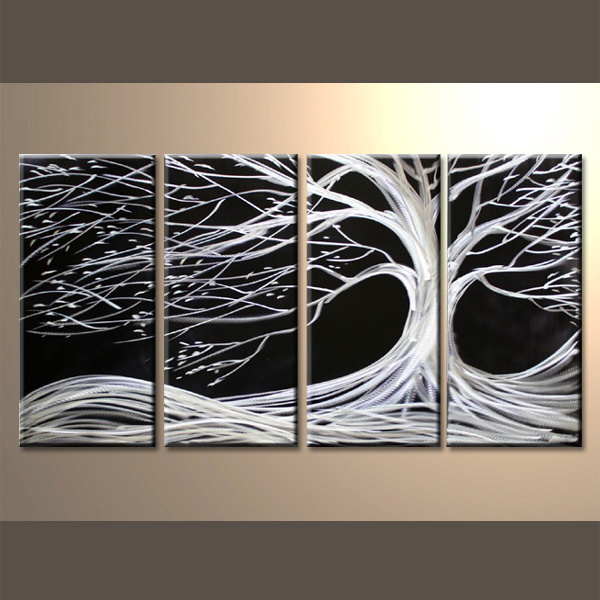 Malerei Aluminium-Vier-Ptychon Baum schwarz 120x80cm
