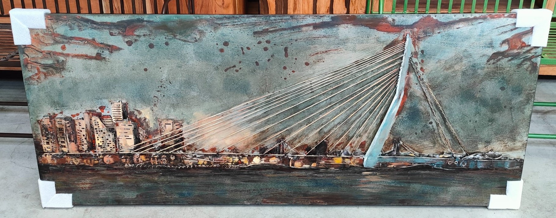 Metall 3D Metallmalerei Erasmusbrücke Rotterdam 60x150cm