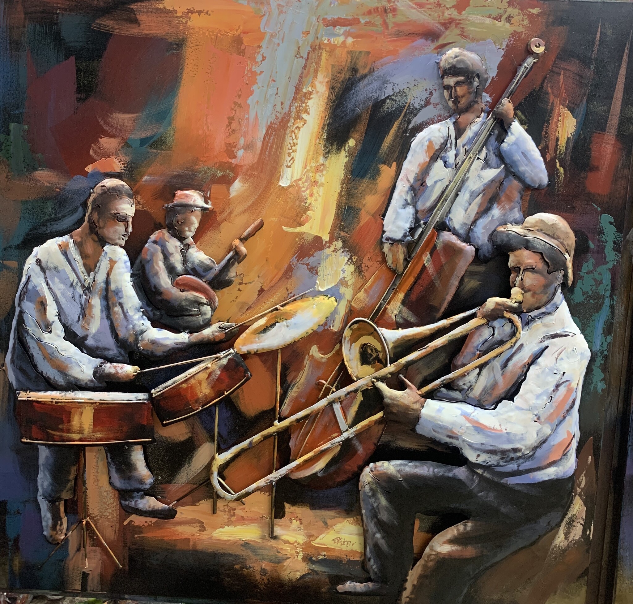 Mit diesem 3D-Gemälde können Sie Ihr Interieur komplett dekorieren. Sie können dieses 3D-Gemälde aus Metall mit dem Bild einer spielenden Musikband in warmen Farben in Ihrem Wohnzimmer, Wohnzimmer oder Schlafzimmer aufhängen, um die Umgebung weiter zu dekorieren.