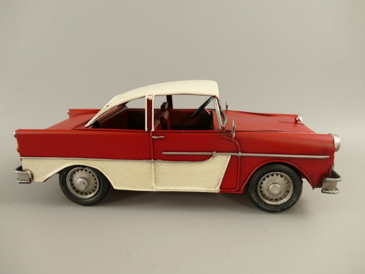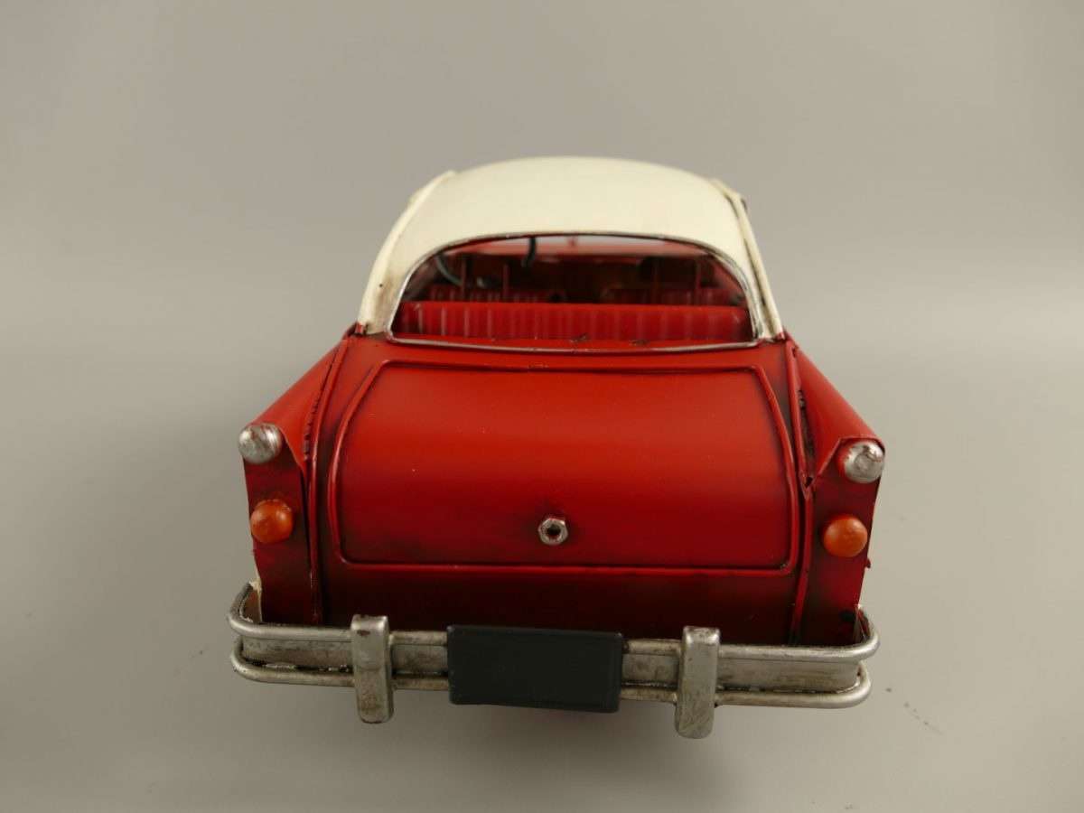Wunderschönes, handgefertigtes Miniaturmodell eines rot/weißen Autos.