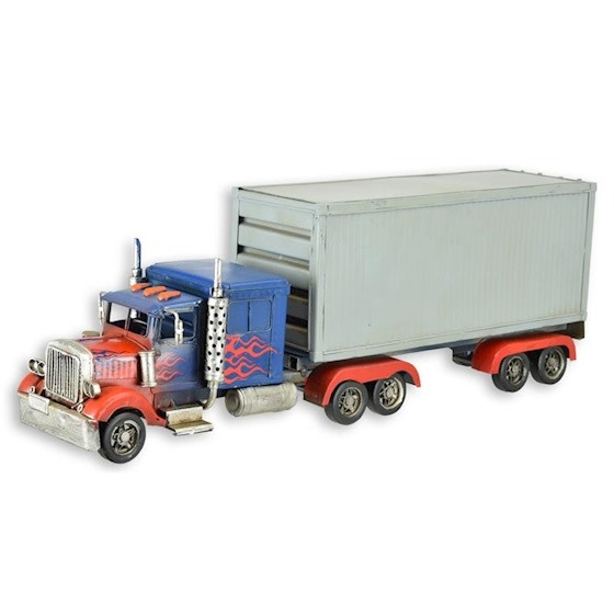 Wunderschönes, handgefertigtes Miniaturmodell eines Traktors mit Containeranhänger.