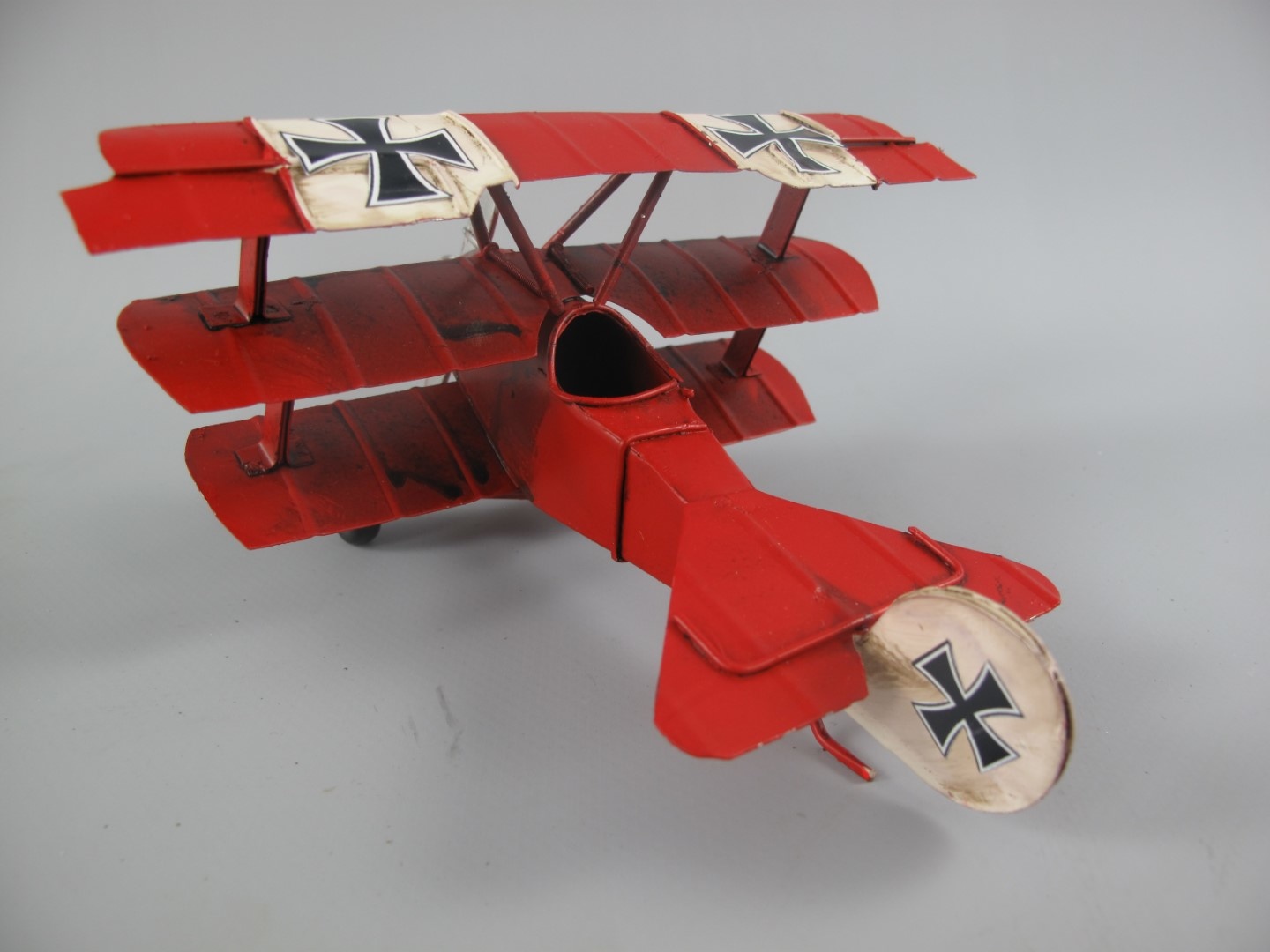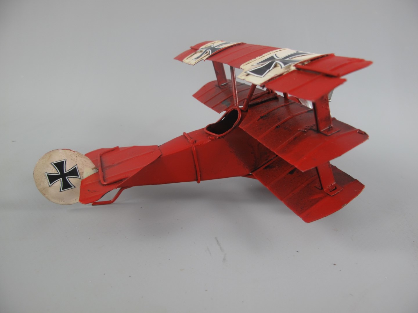 Wunderschön handgemachtes Modell eines roten Flugzeug-3-Deckers.