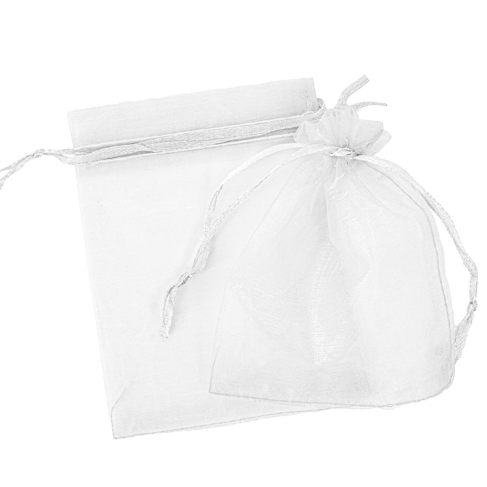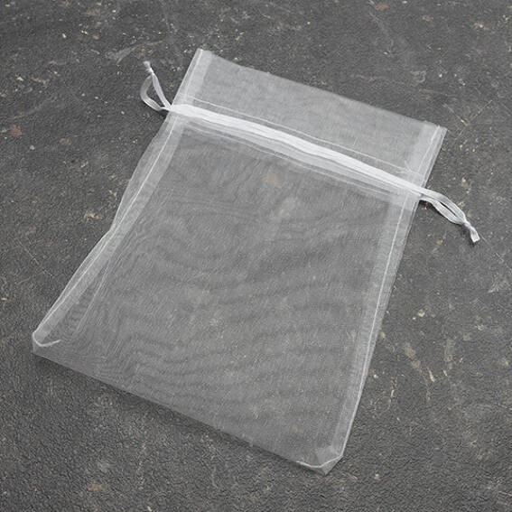 Gut verarbeitete Beutel aus durchscheinendem Organzastoff mit Kordelzug.
