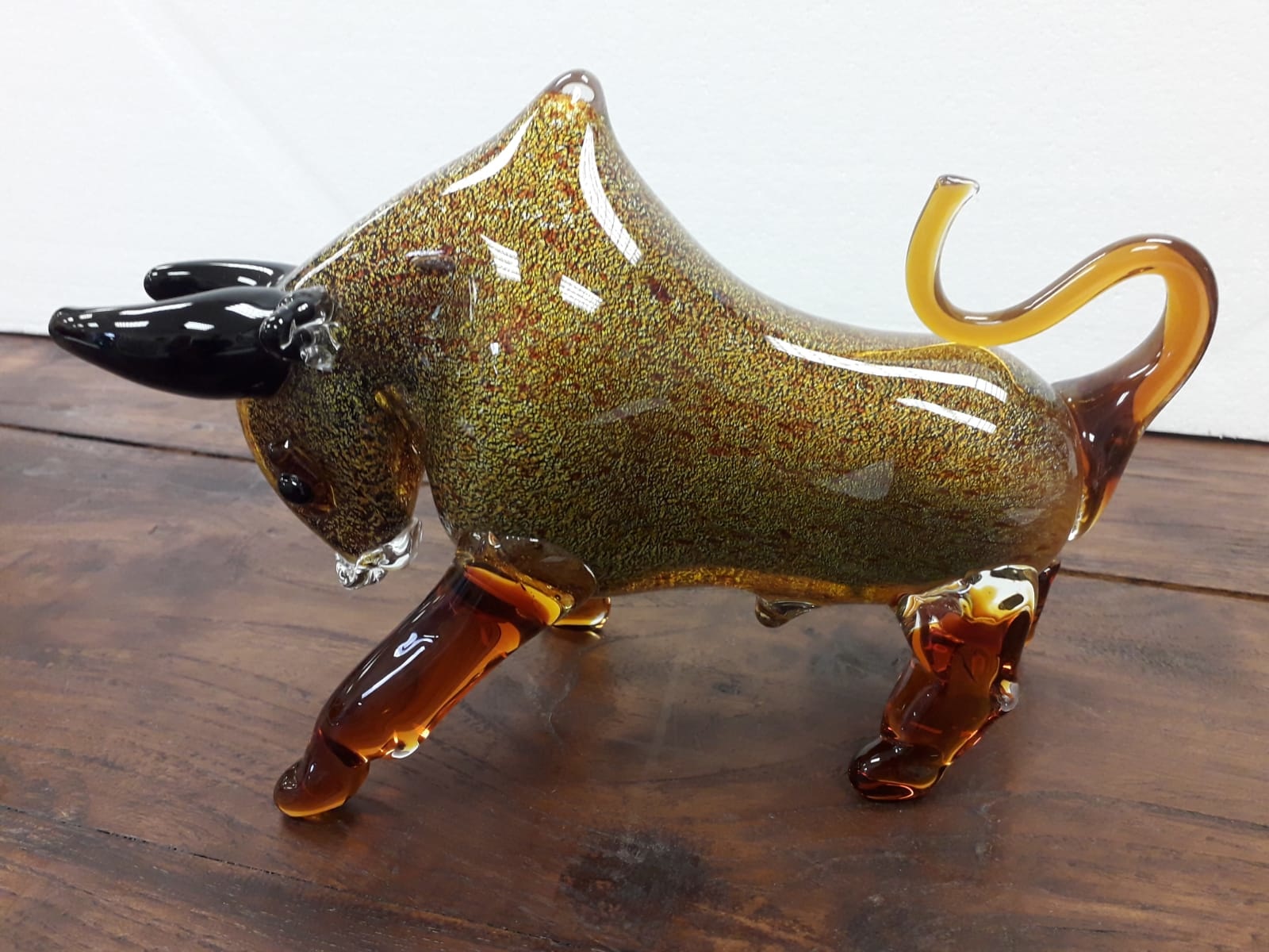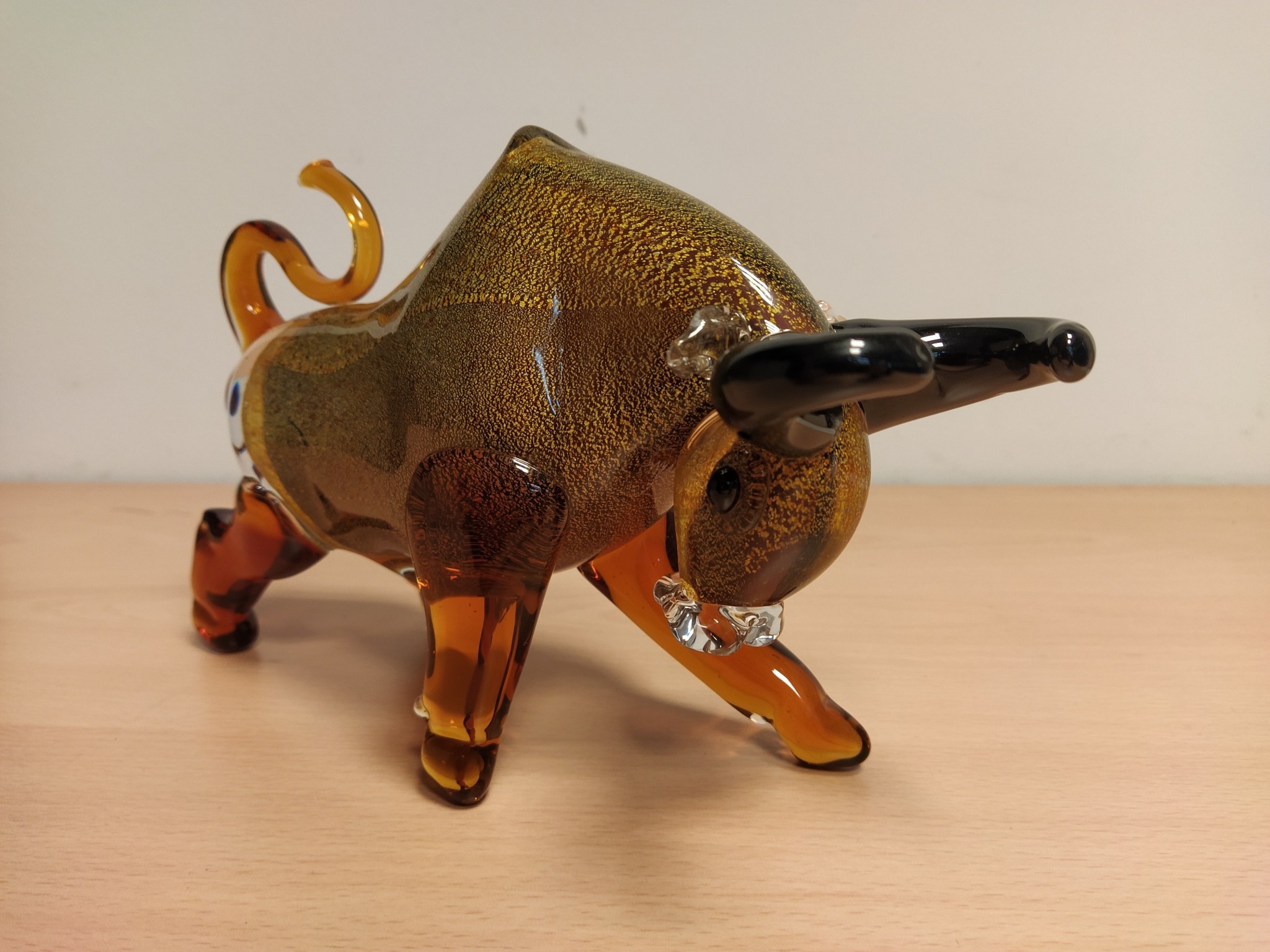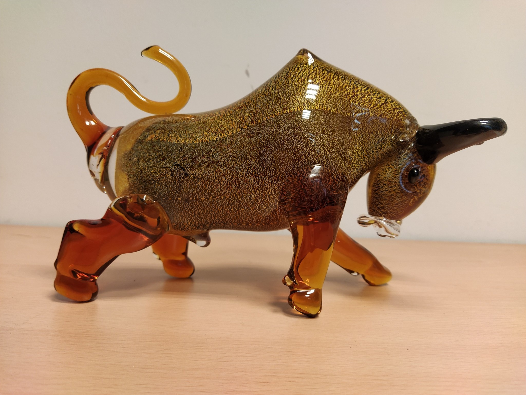 Dieses einzigartige Glasdekorationsobjekt in Form eines Stiers ist ein wunderschönes Dekorationsstück für Ihr Zuhause oder zum Verschenken. Die Statue besteht aus dickem Glas und wir haben sie in verschiedenen Farben zum Verkauf.
