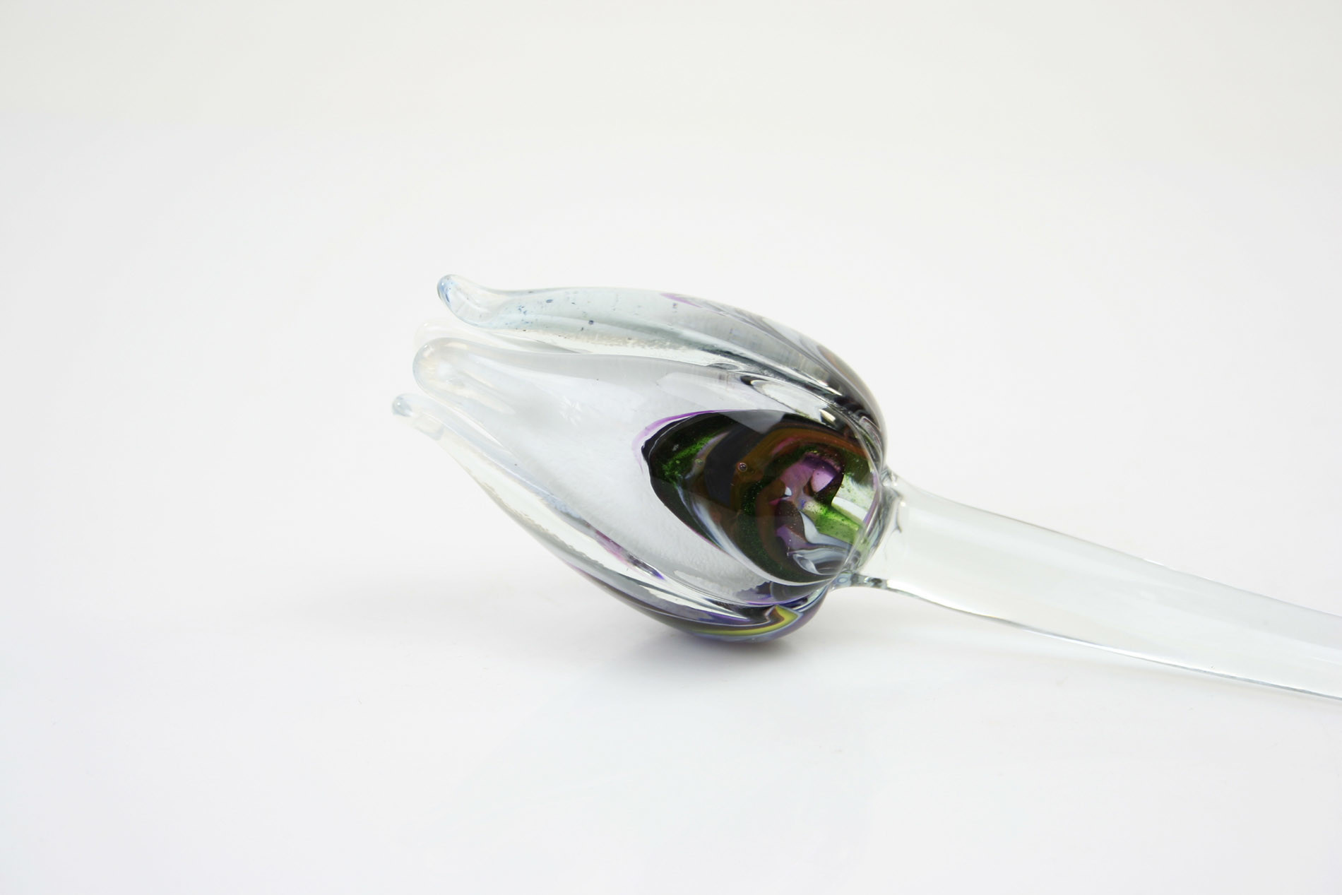 Diese einzigartige Glastulpe ist ein wunderschönes Dekorationsstück für Ihr Zuhause oder Ihr Büro. Die Qualität dieser Tulpe ist gut, da sie von einem traditionellen Glasbläser aus dem bekannten Böhmen, der europäischen Glasregion schlechthin, hergestellt wurde.