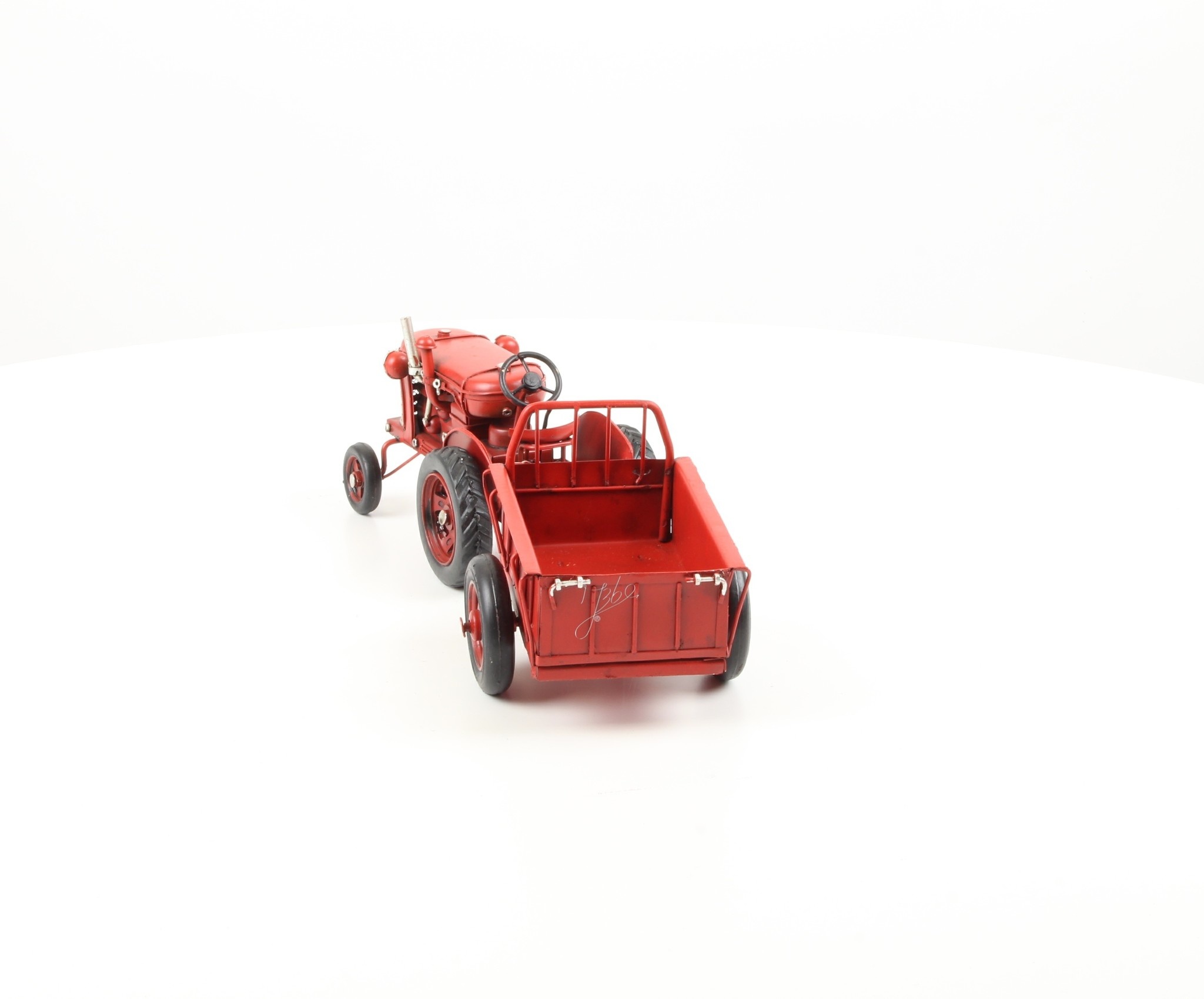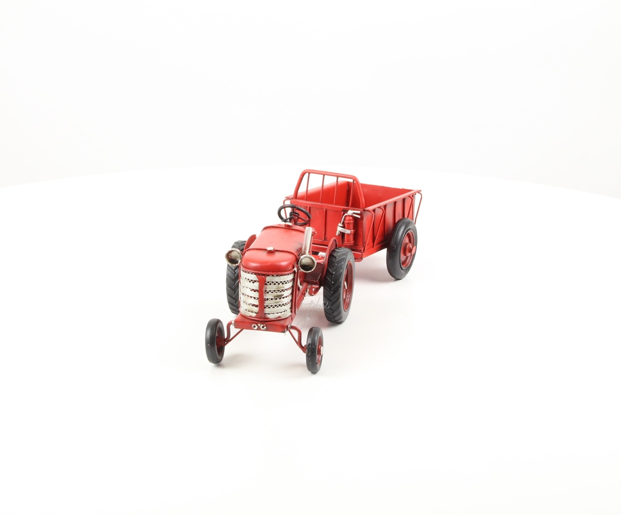 Schönes handgefertigtes Modell eines Traktors mit Wagen.