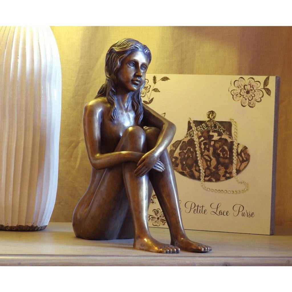 Schönes Bild einer nackten sitzenden Frau aus hochwertiger Bronze mit einem Kupfergehalt von mindestens 75%, was ein sehr langes Leben garantiert.