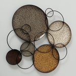 Diese dreidimensionale Wanddekoration aus Metall verschönert jedes moderne Interieur oder jeden Arbeitsplatz. Dieses Modell mit Scheiben und Kreisen wird zu einem stimmungsvollen und zeitlosen Wandschmuck und einem echten Hingucker. Da es sich um ein menschliches Werk handelt, kann das Foto farblich leicht von der echten Kopie abweichen.