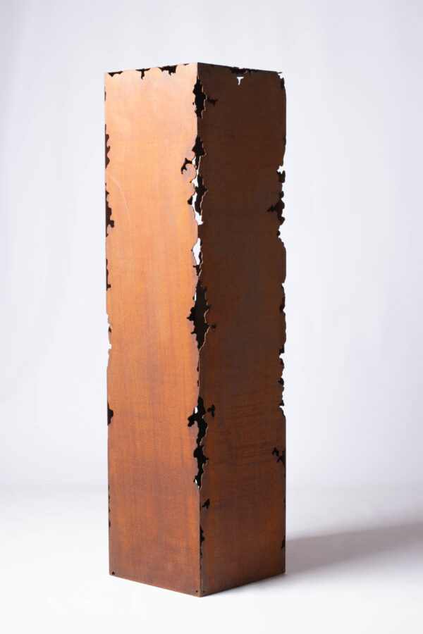 Einen besonderen Stimmungsmacher in Ihrem Garten können Sie diese Leuchtsäule nennen. In diesem Sockel mit Rissen und Locken, durch die warmweißes Licht im Dunkeln scheint. Diese Säule besteht aus 2 mm dickem, unbehandeltem Eisen, was ihr eine schöne und zeitlose (rost-)braune Farbe verleiht.