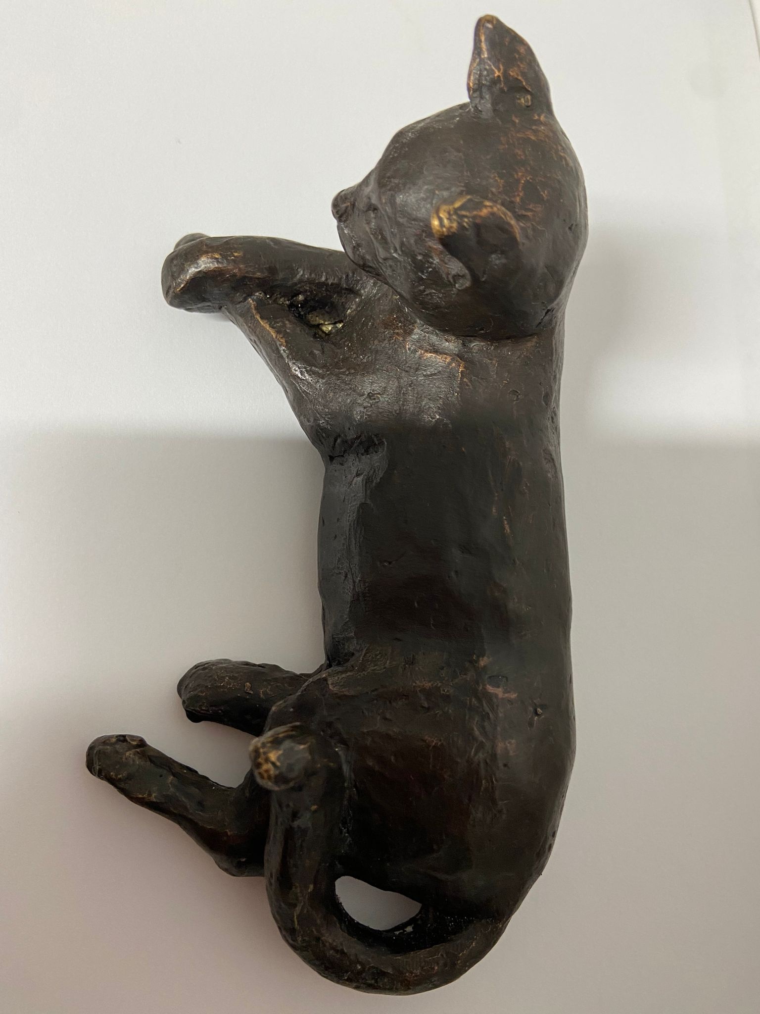 Skulptur aus Bronze, liegende Katze, 15 cm