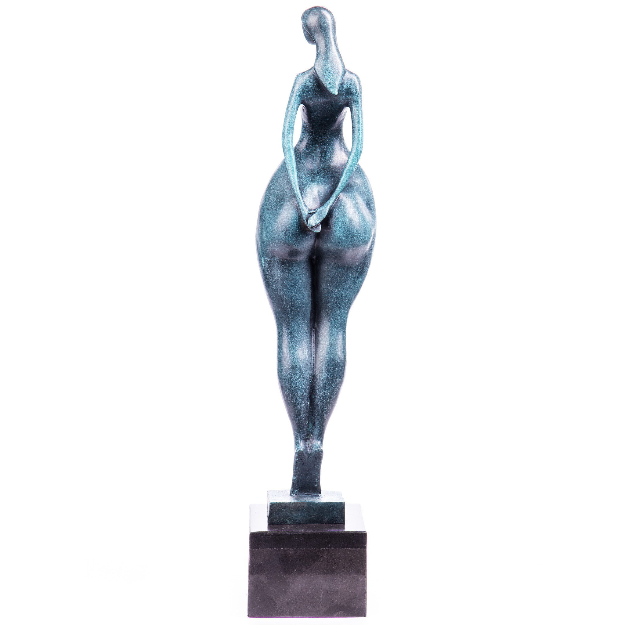 Wunderschöne Bronzeskulptur einer Frau mit breiten Hüften. Sehr schön detailliert und traditionell im Wachsausschmelzverfahren hergestellt. Diese Statue hat eine wetterbeständige grüne Patina.