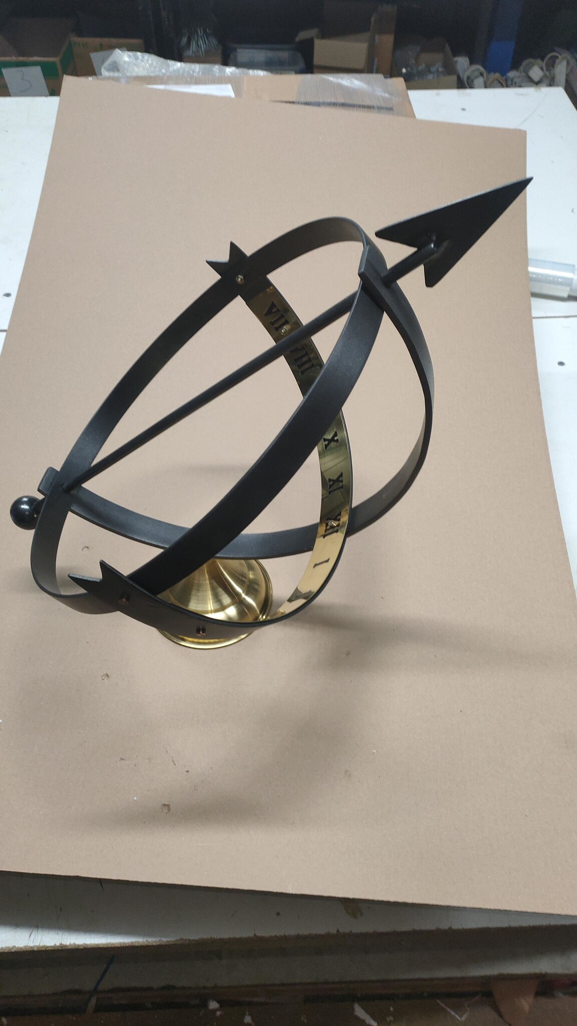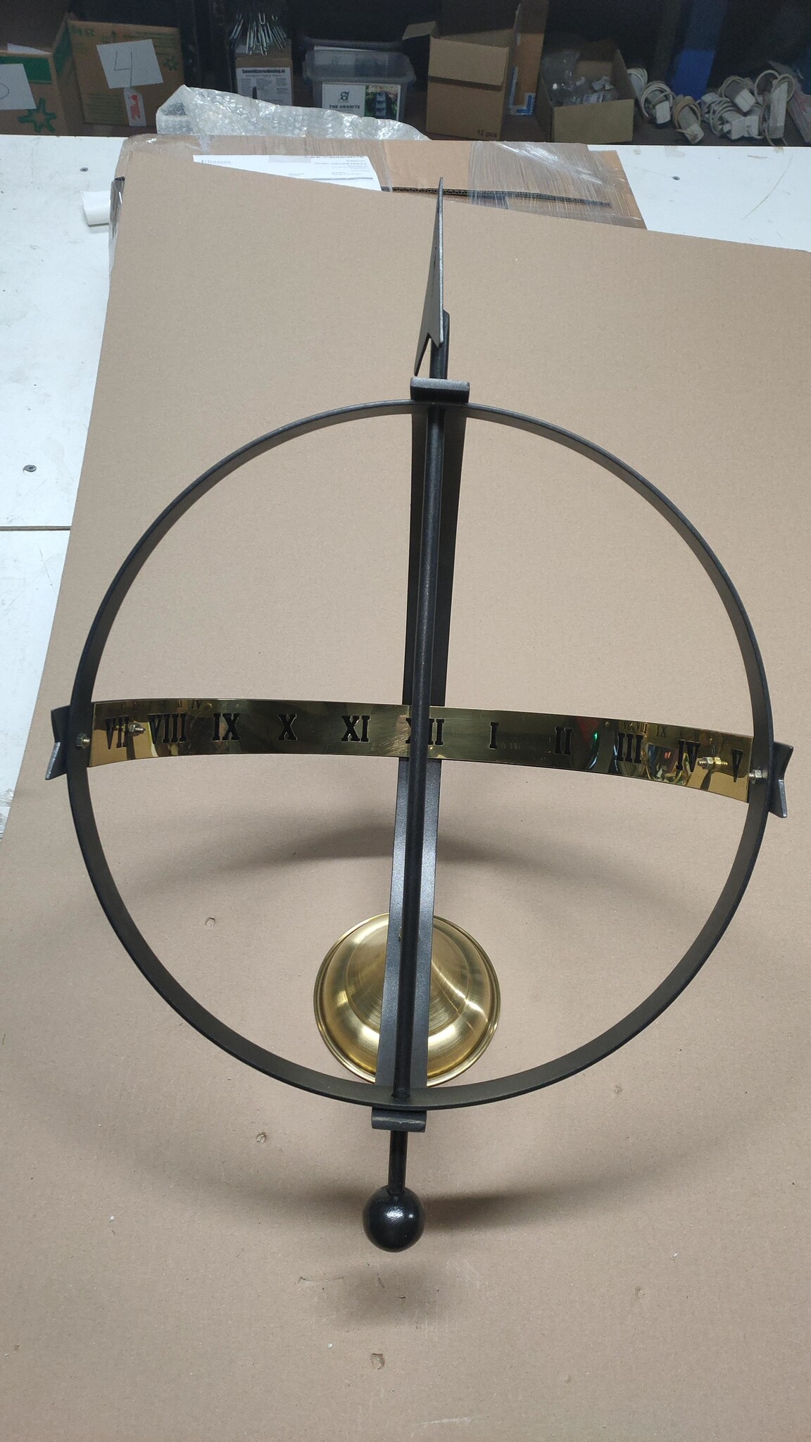 Dieses moderne Modell einer Sonnenuhr ist aus dickem Stahl gefertigt. Dies garantiert eine sehr lange Lebensdauer. Darüber hinaus ist diese Sonnenuhr mit einem Ziffernband aus Kupfer versehen. Unten befindet sich ein runder Kupfersockel mit einem 8mm Schraubgewinde, das Sie zuschneiden müssen und mit dem Sie die Sonnenuhr eventuell befestigen können.