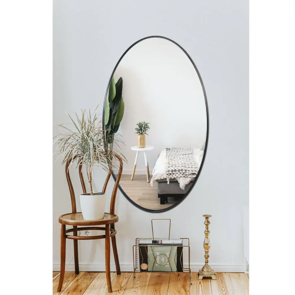 Spiegel aus Metall, schwarz, industriell, modern, oval, 60 x 130 cm