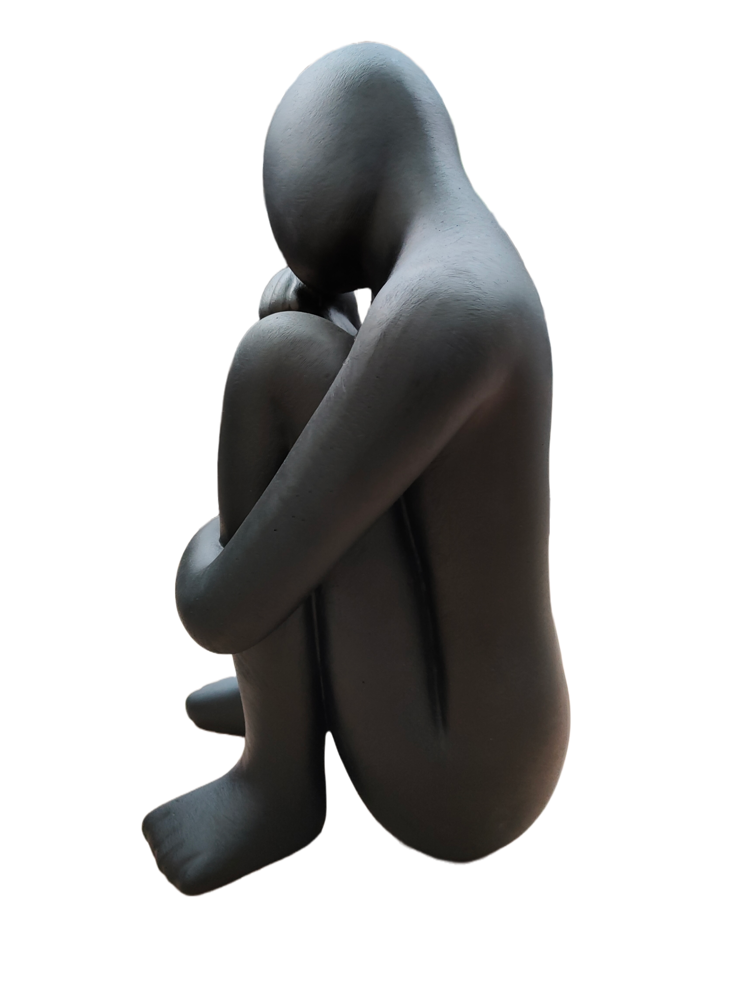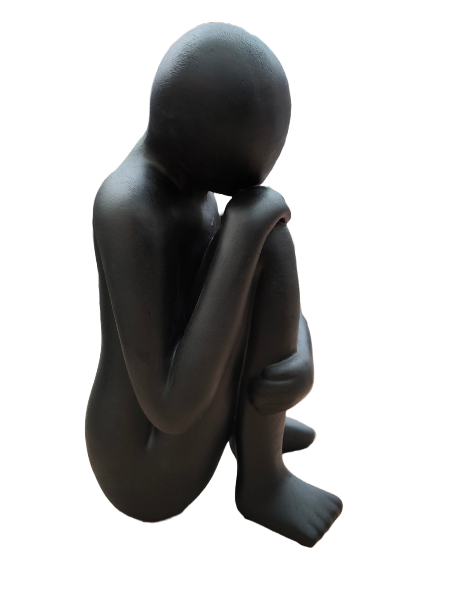 Statue eines sitzenden Mannes mit Kopf auf Knie Anthrazit 38cm