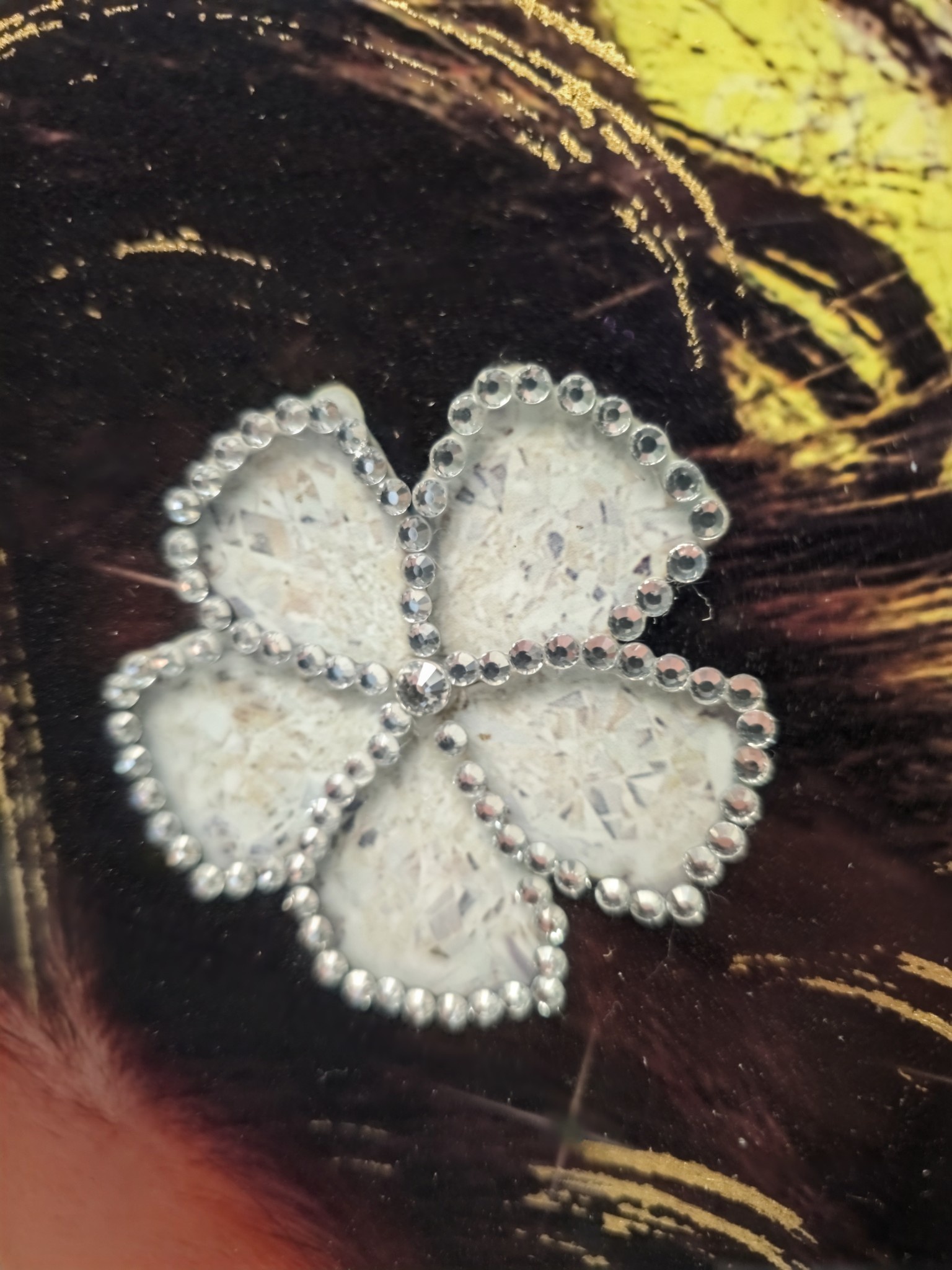 Moderne Glasmalerei mit vielen Strass-Akzenten.