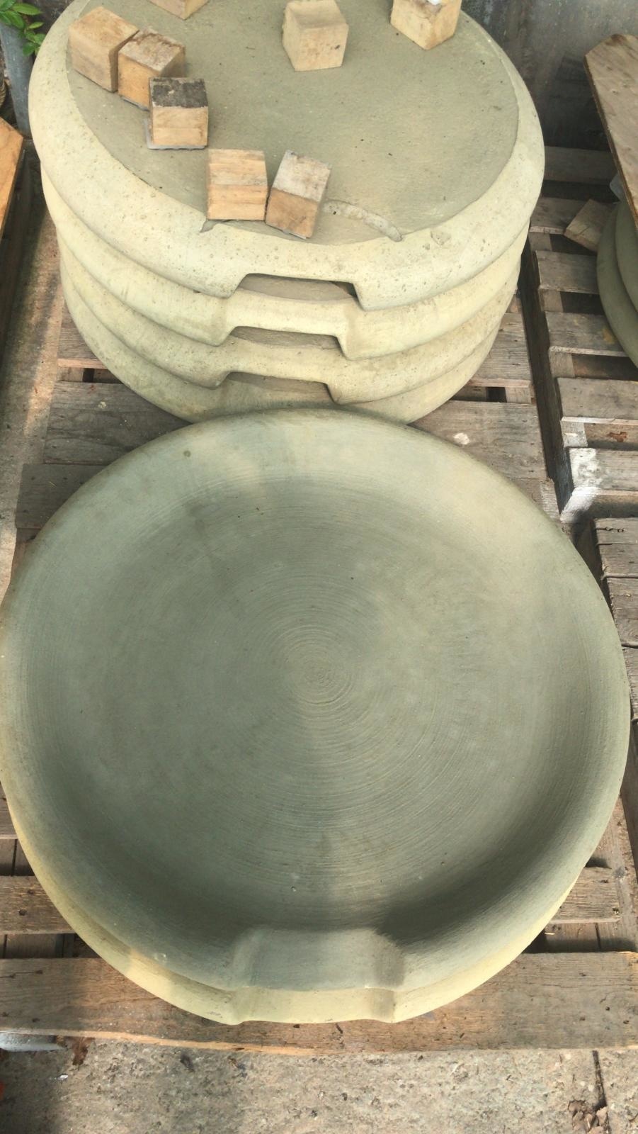 Das sind gegossene Ornamente aus gegossenem Stein, die Sie mit einer Wasserschüssel oder einem Teich in ein Kiesbett ablassen können. Erhältlich in Anthrazit, Terra oder Gelb.