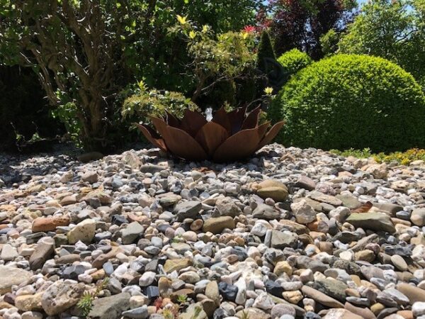 Pflanzenförmiges Wasserspiel in Form einer Agavenpflanze. Die Größe eines losen Ornaments beträgt 80 cm im Durchmesser und ca. 40 cm hoch. Ein schöner Hingucker für den Garten bei Ihnen zu Hause oder für das Büro. Nirgendwo sonst erhältlich! Aufgrund der Schweißung kann es zu Verformungen der Grundplatte kommen, was normal ist und keinen Schaden verursacht.