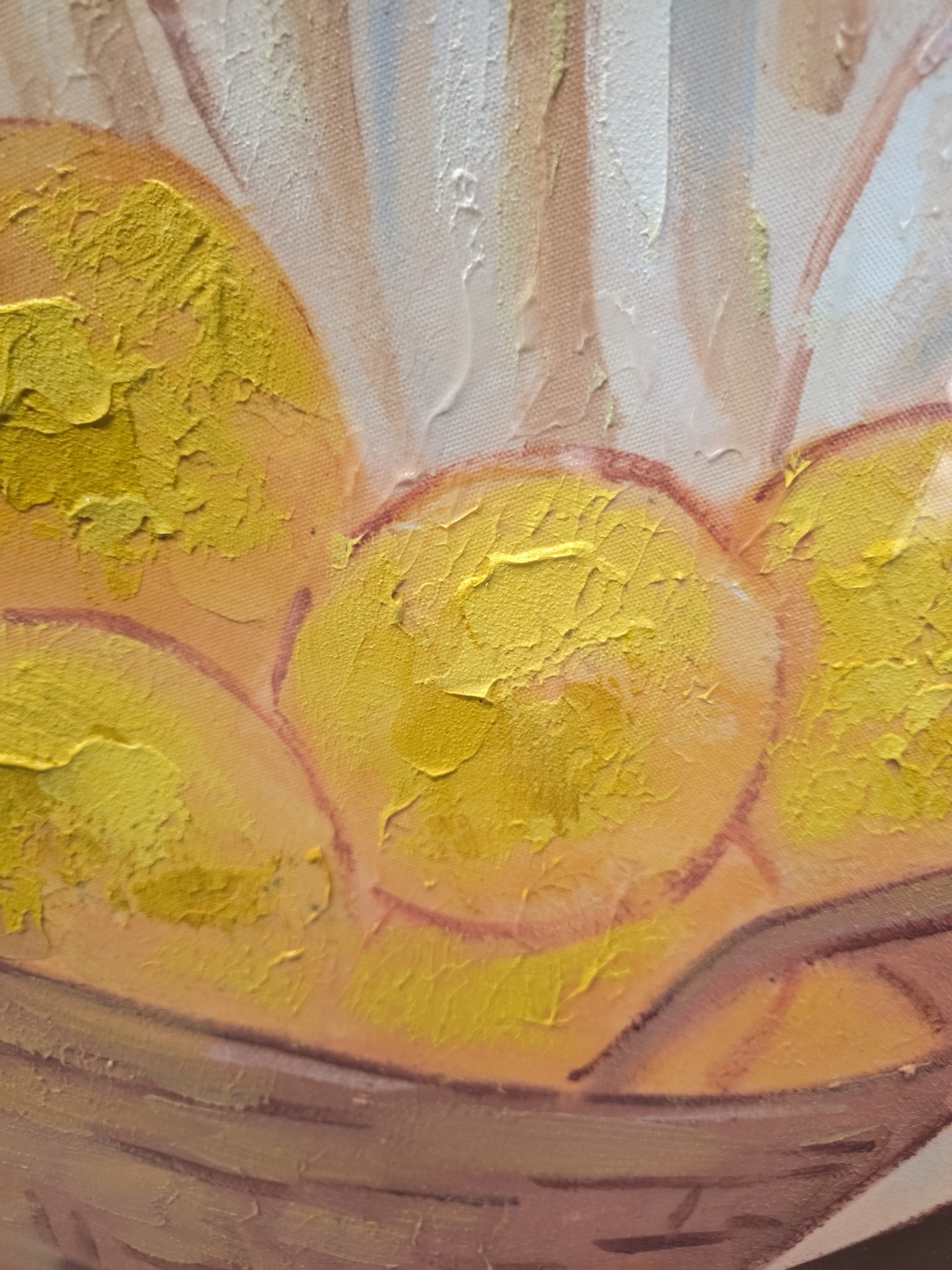 Wunderschönes Leinwandgemälde, bearbeitet mit Acrylfarbe. Abmessungen 70x105cm.
