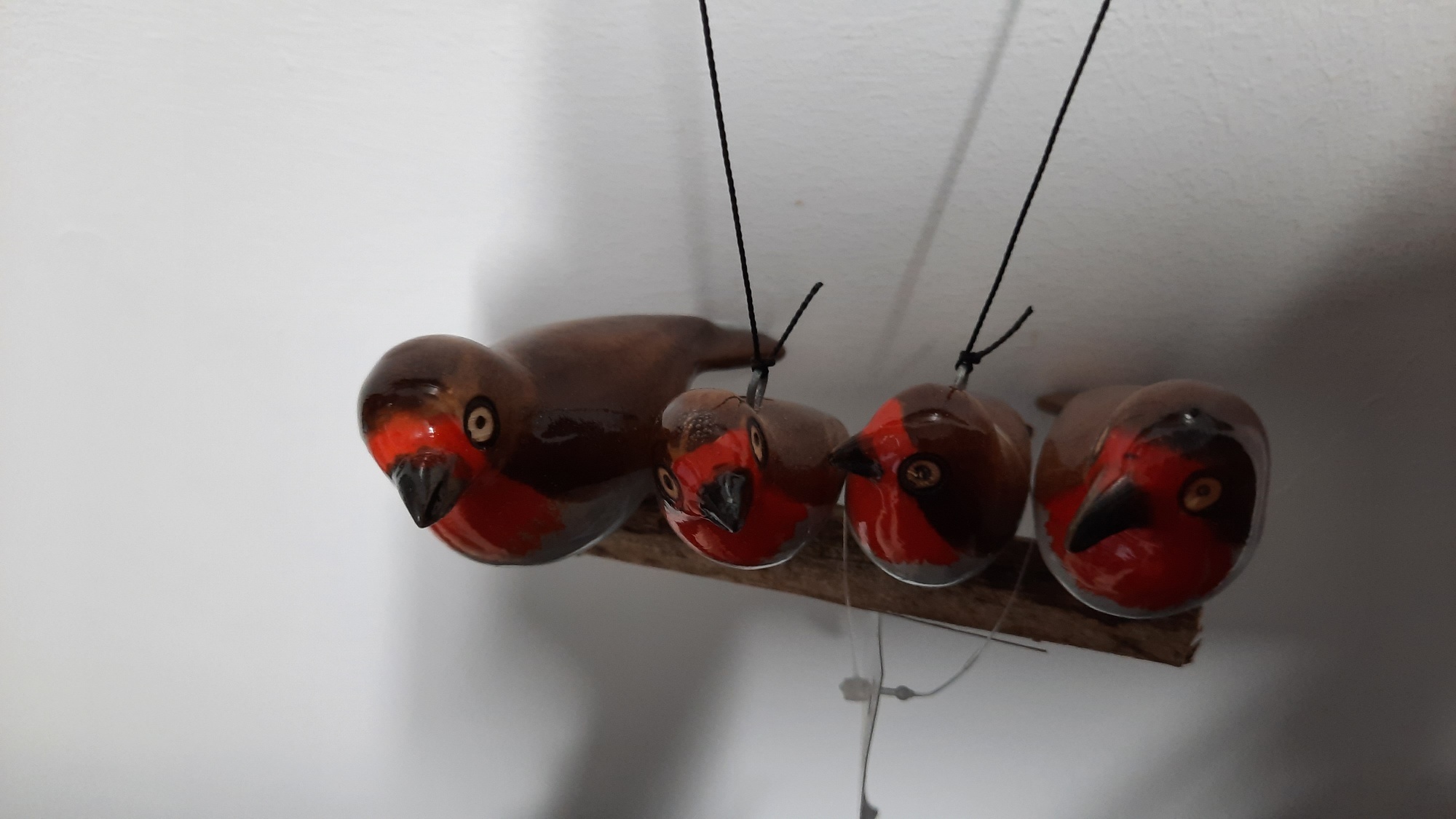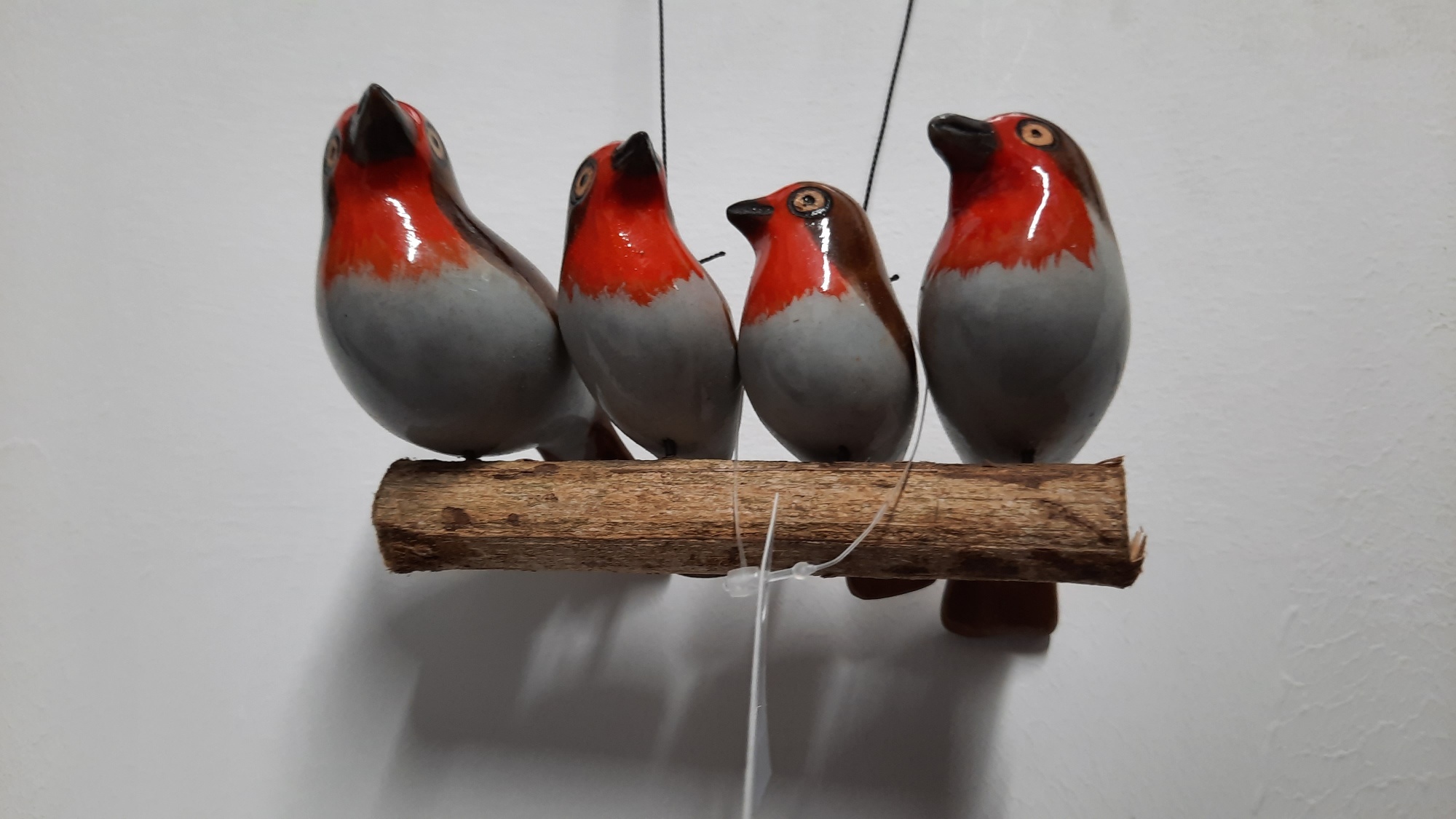 Make yourself or someone else happy with this decorative pendant with a twig with 4 hand-painted birds. Very decorative to hang indoors or outdoors.
