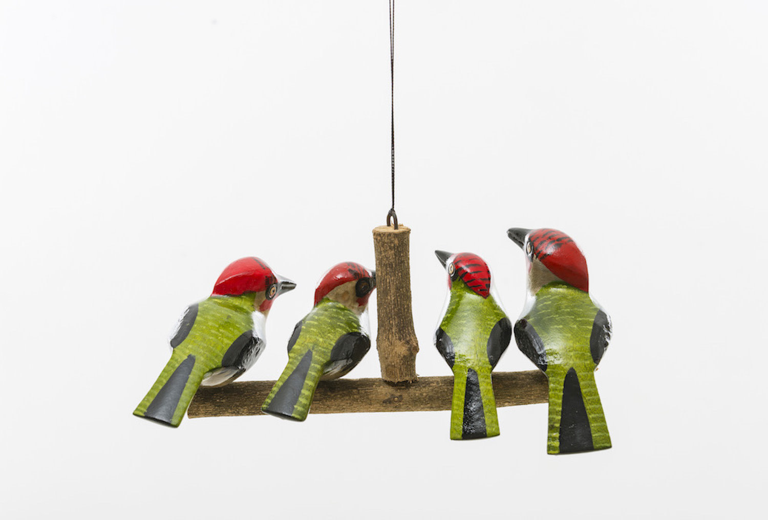 Make yourself or someone else happy with this decorative pendant with a twig with 4 hand-painted birds. Very decorative to hang indoors or outdoors.