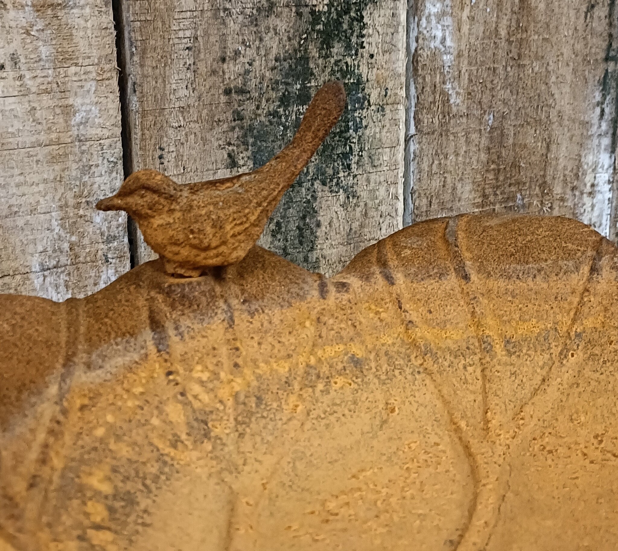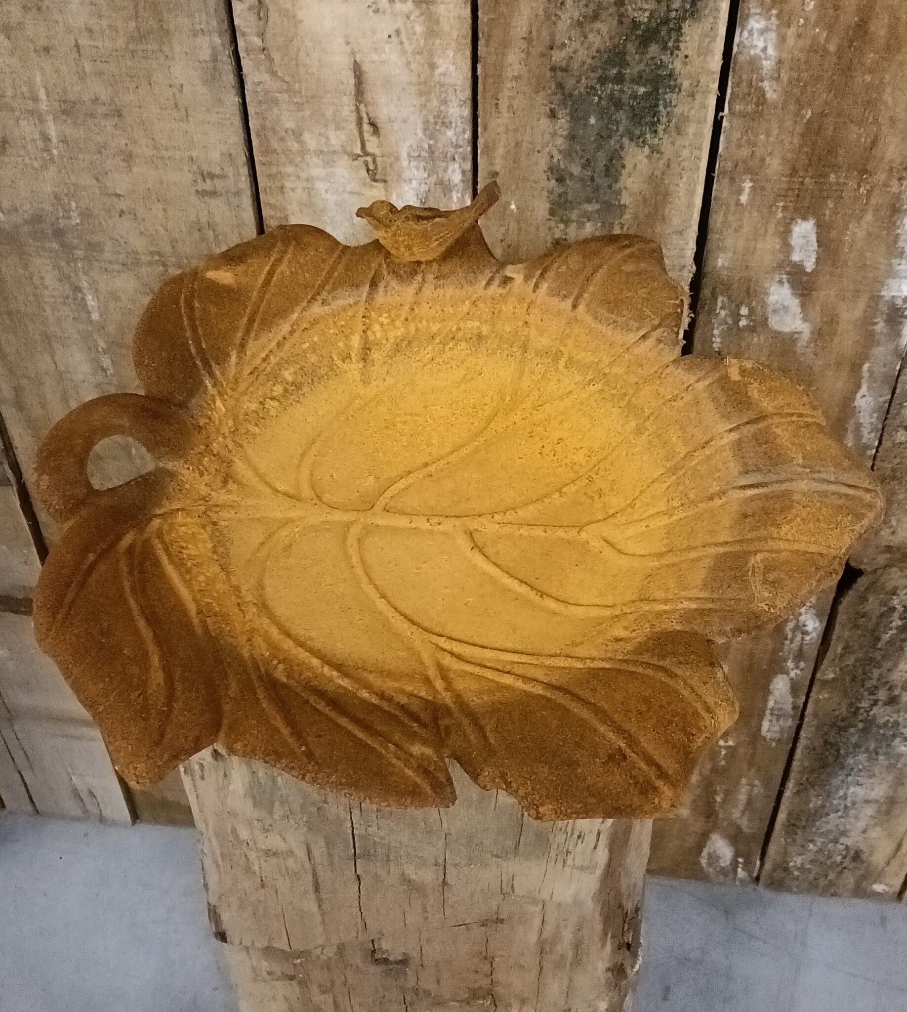 Are you looking for a nostalgic bird drinking bowl with a timeless rural look that will never break? Then this bird drinking bowl made of solid cast iron in the shape of a leaf might be something for you.