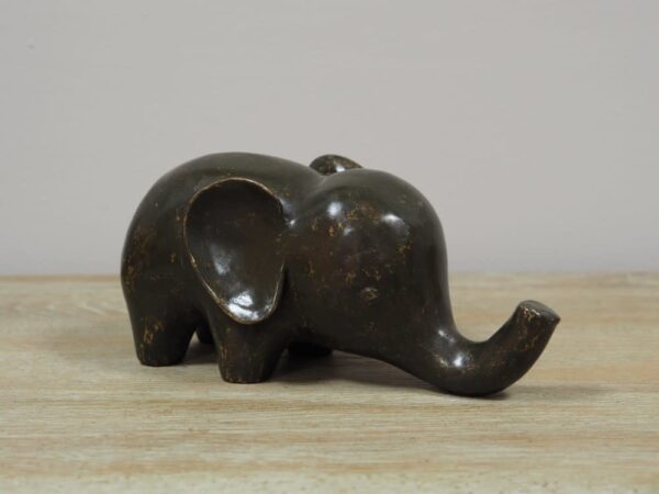 This bronze modern figurine of an elephant measures 22x9x9cm and is made in a traditional way with the so-called lost wax method.