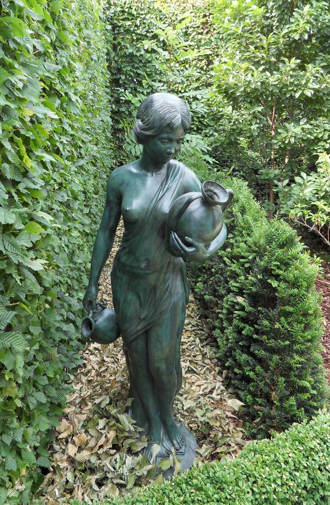 Beautiful statue of Antonia with water jars from which water flows, made of high-quality bronze with a minimum copper content of 75%, which guarantees a very long lifespan.