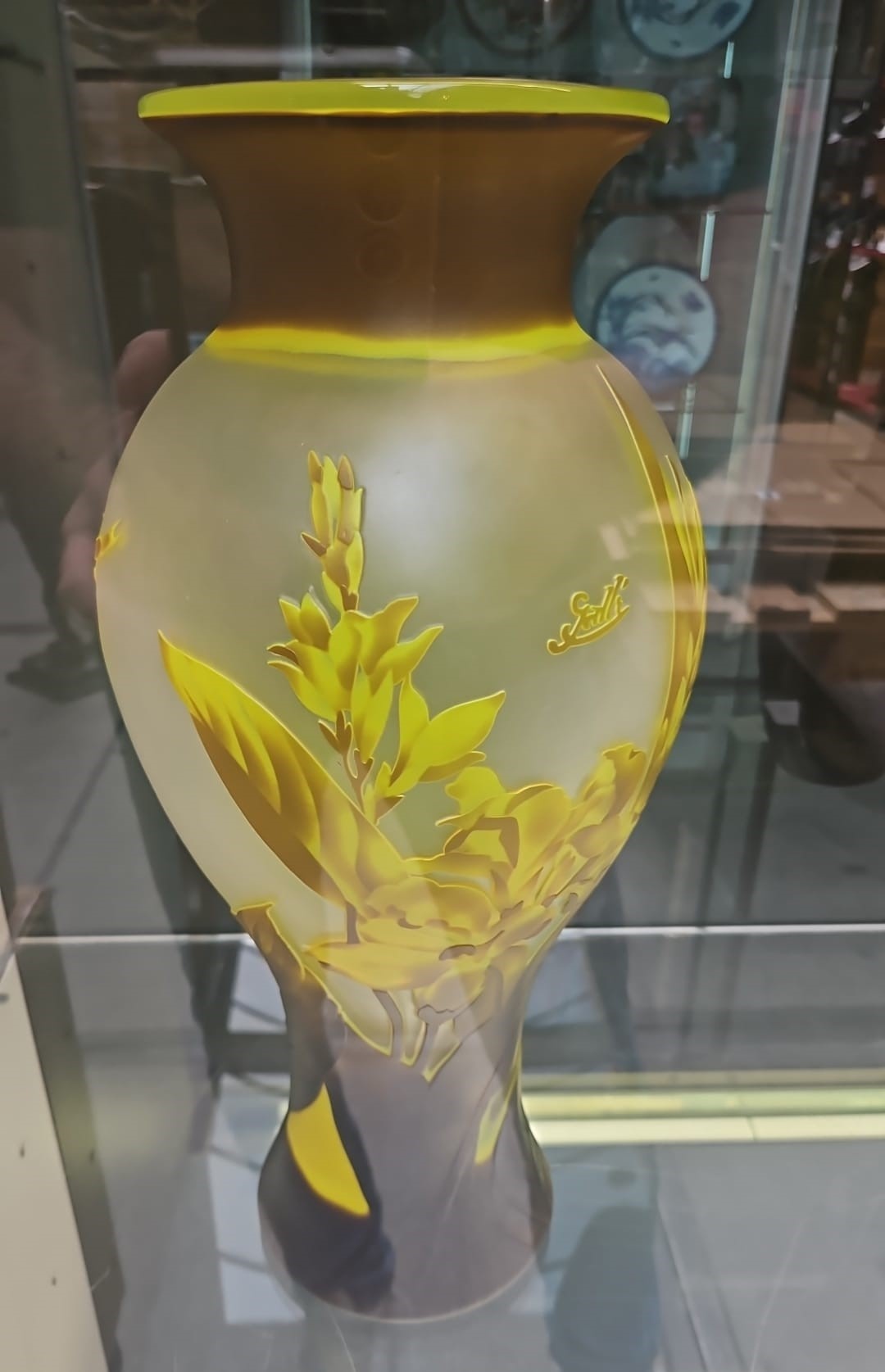 Cameo glass vase Dragonfly yellow 45cm